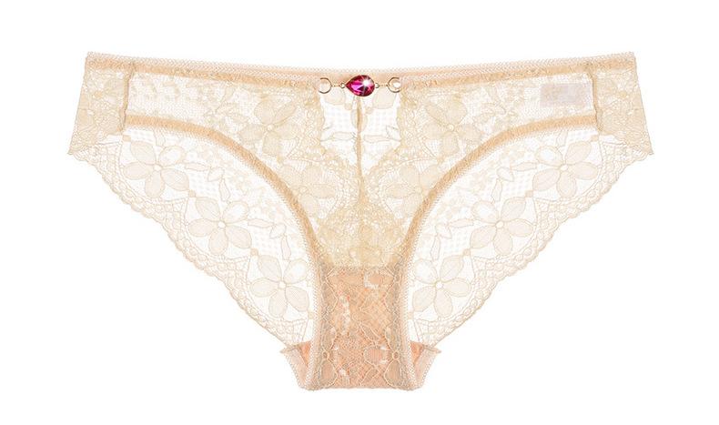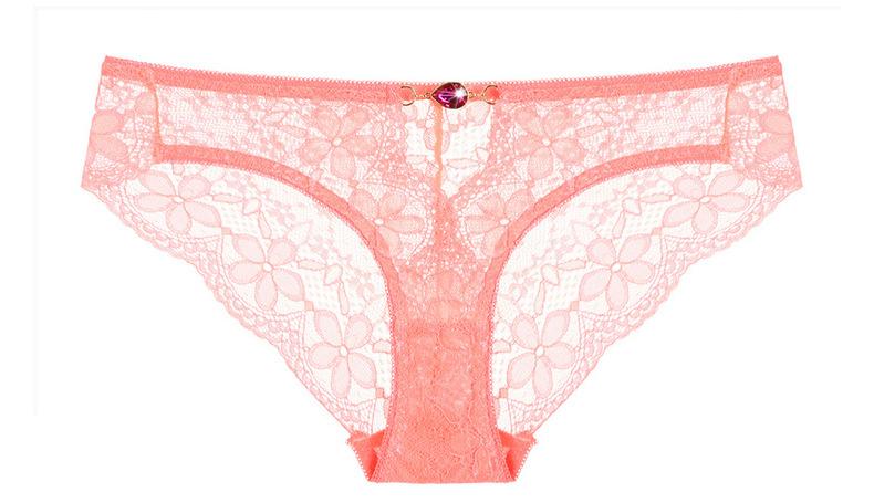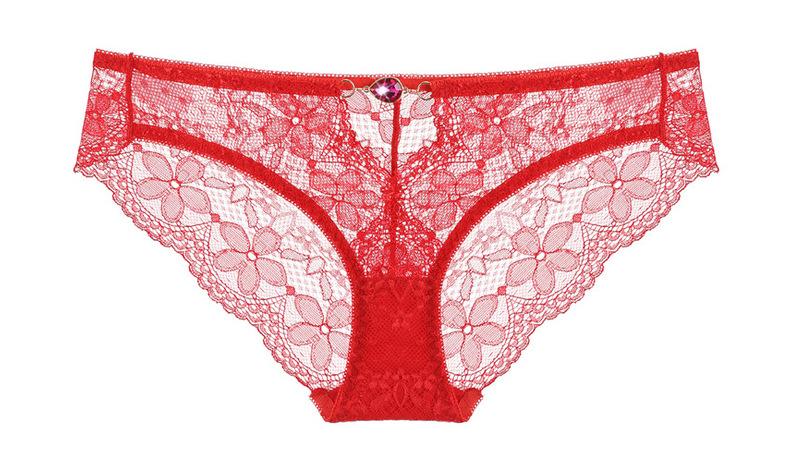 Calcinha feminina sensual em renda premium em formato de V com diamante, transparente, tentação, cintura baixa, respirável e charmosa