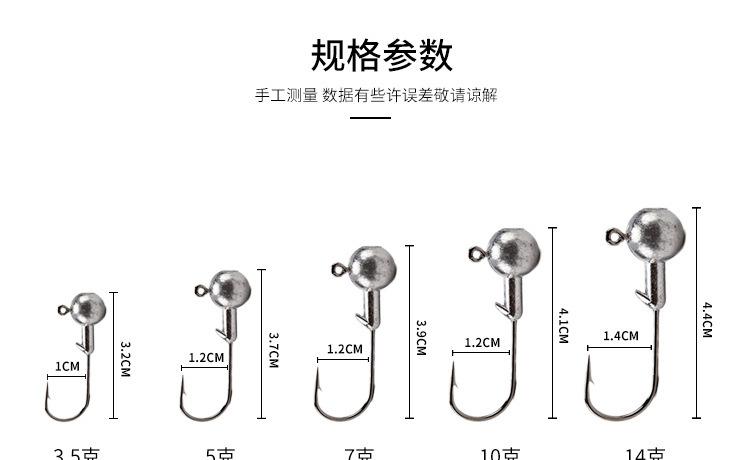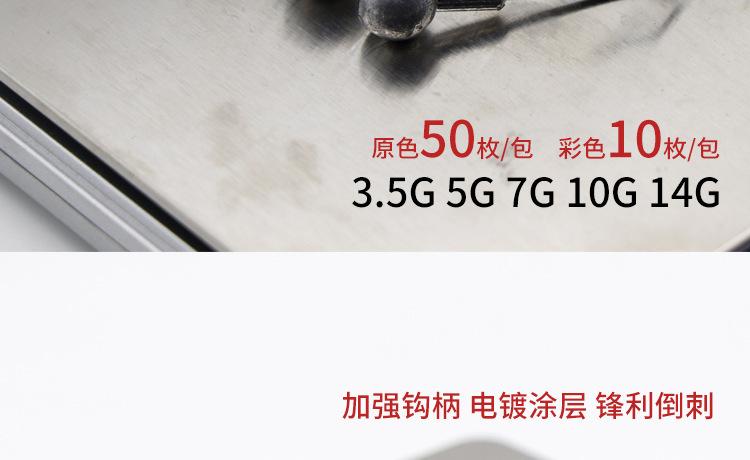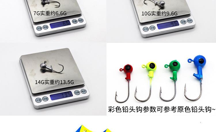 Color lead hook 3.5g10 pieces per pack, Colored lead hook 5g10 pieces per pack, Color lead hook 7g10 pieces pe...