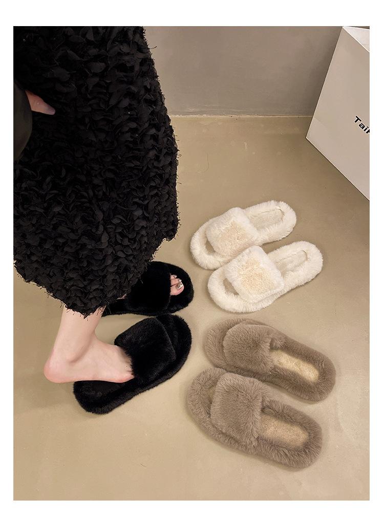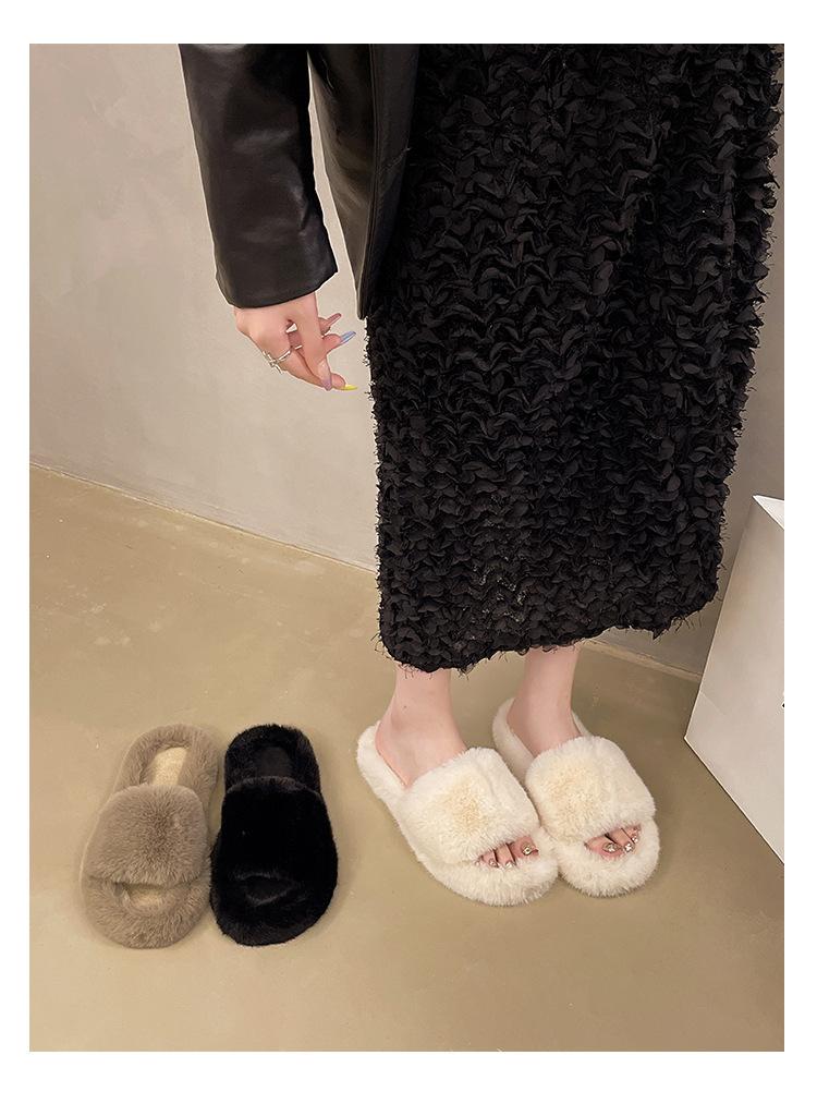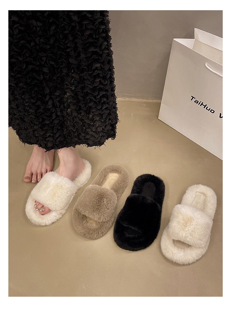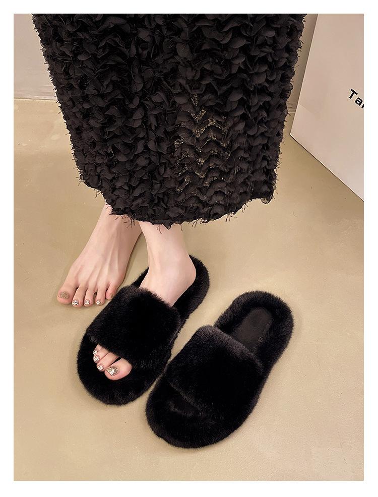 2024 Novo Comércio Exterior plus size Casa Estilo Coreano All-match Outer Wear Flat Fashionable Mao Mao Net Vermelho Chinelos Femininos