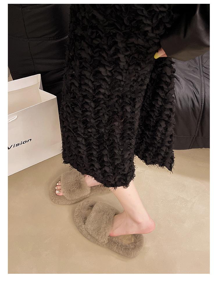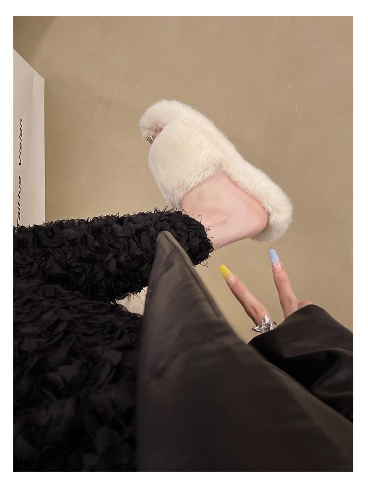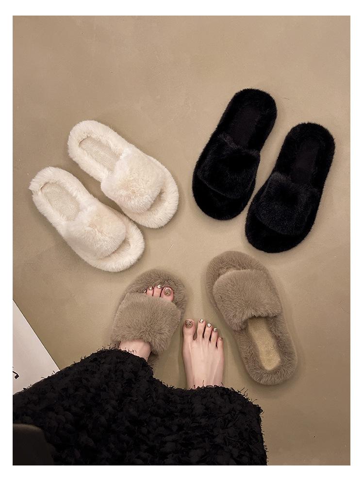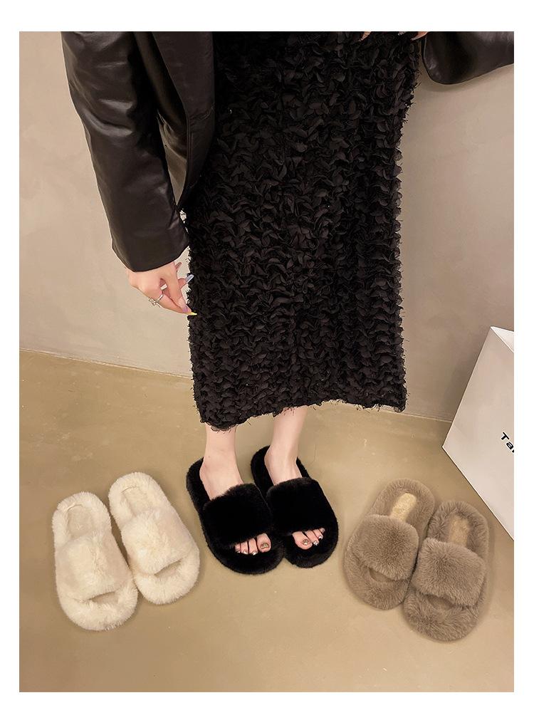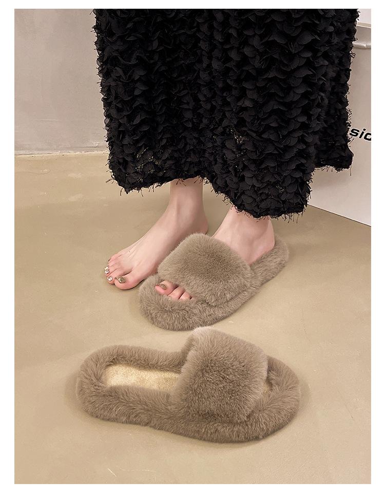 2024 Novo Comércio Exterior plus size Casa Estilo Coreano All-match Outer Wear Flat Fashionable Mao Mao Net Vermelho Chinelos Femininos