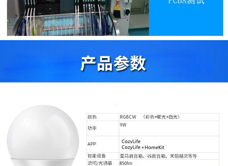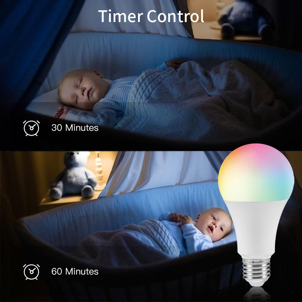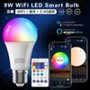 Lâmpada inteligente WIFI, potência real: 9 W. Pode ser conectada a alto-falantes inteligentes como Alexa/Google Home e é compatível com Apple Homekit.