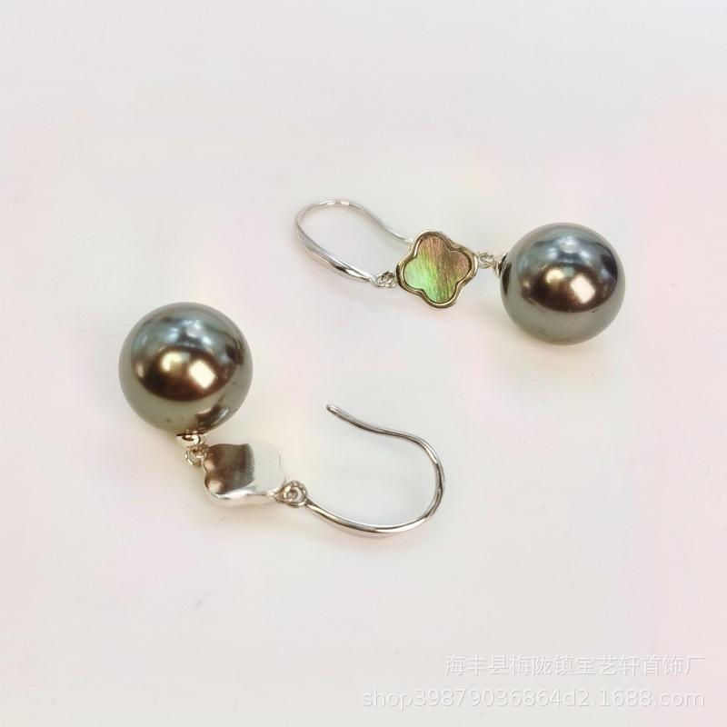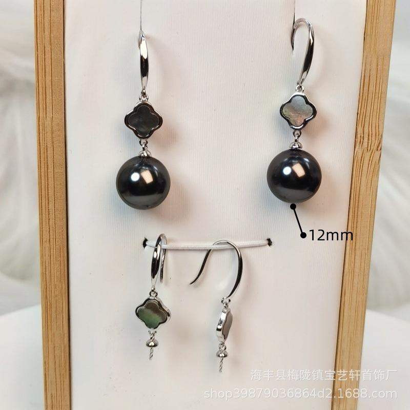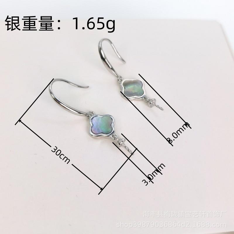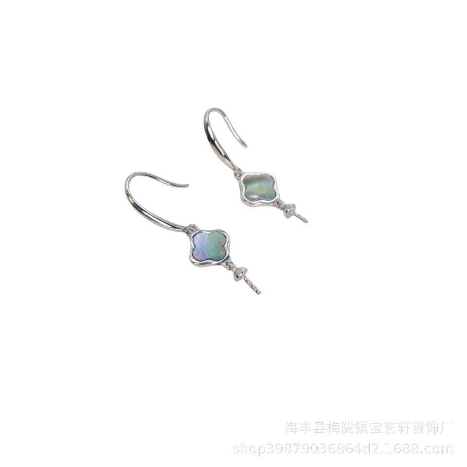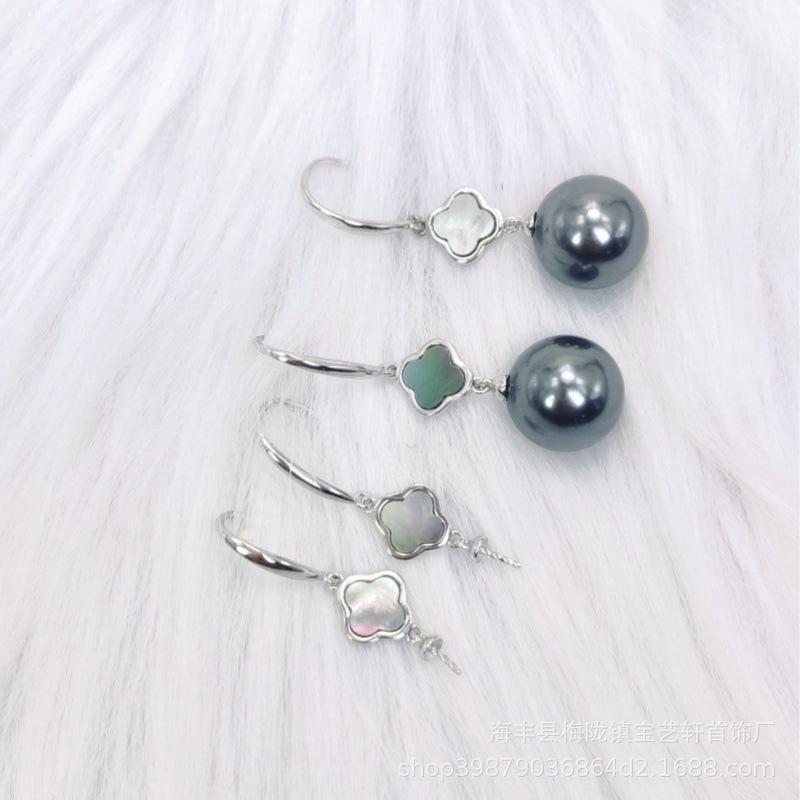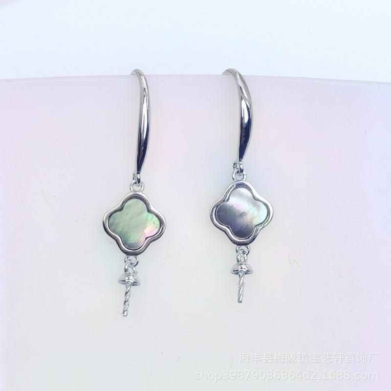 S925 Sterling Silver Four-Leaf Colored Shell Ear Hook Acessórios Handmade Pearl Ear Hook Acessórios 10-15mm Eardrops Suporte Vazio