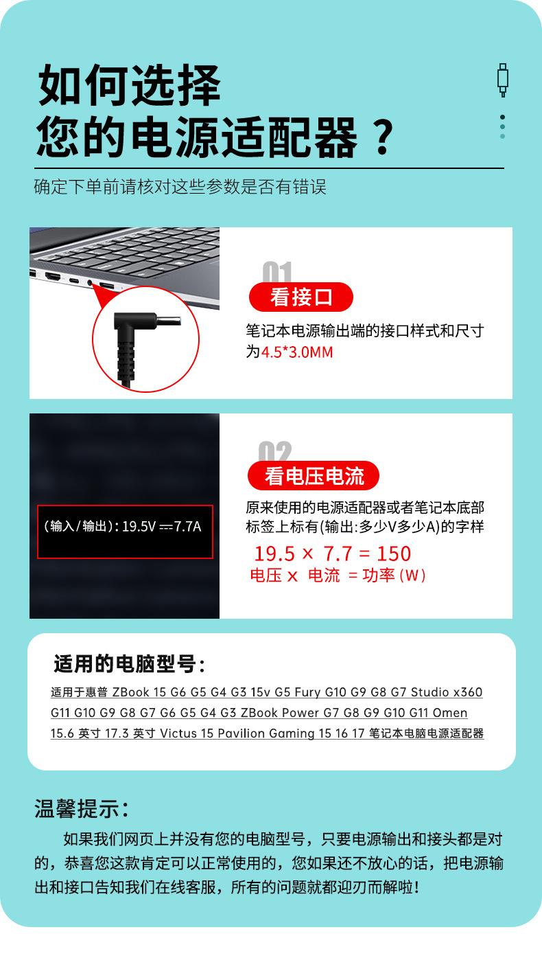 Adequado para adaptador de energia de notebook HP 150W 19.5V7.7A carregador de computador 4.5 * 3.0mm