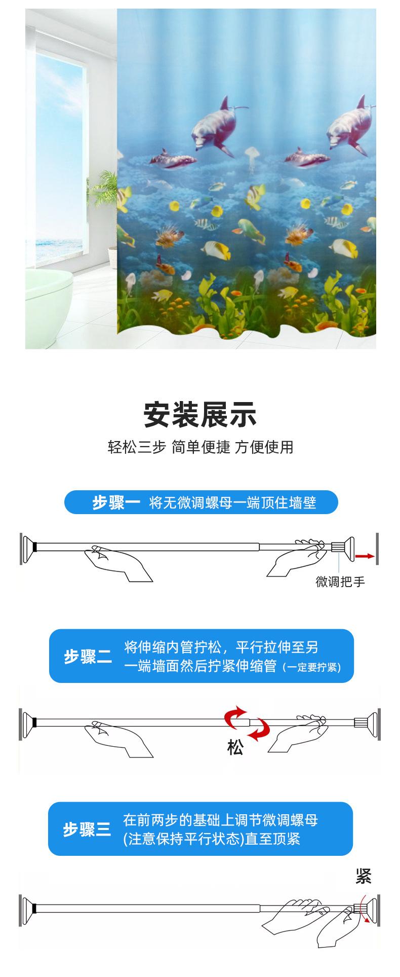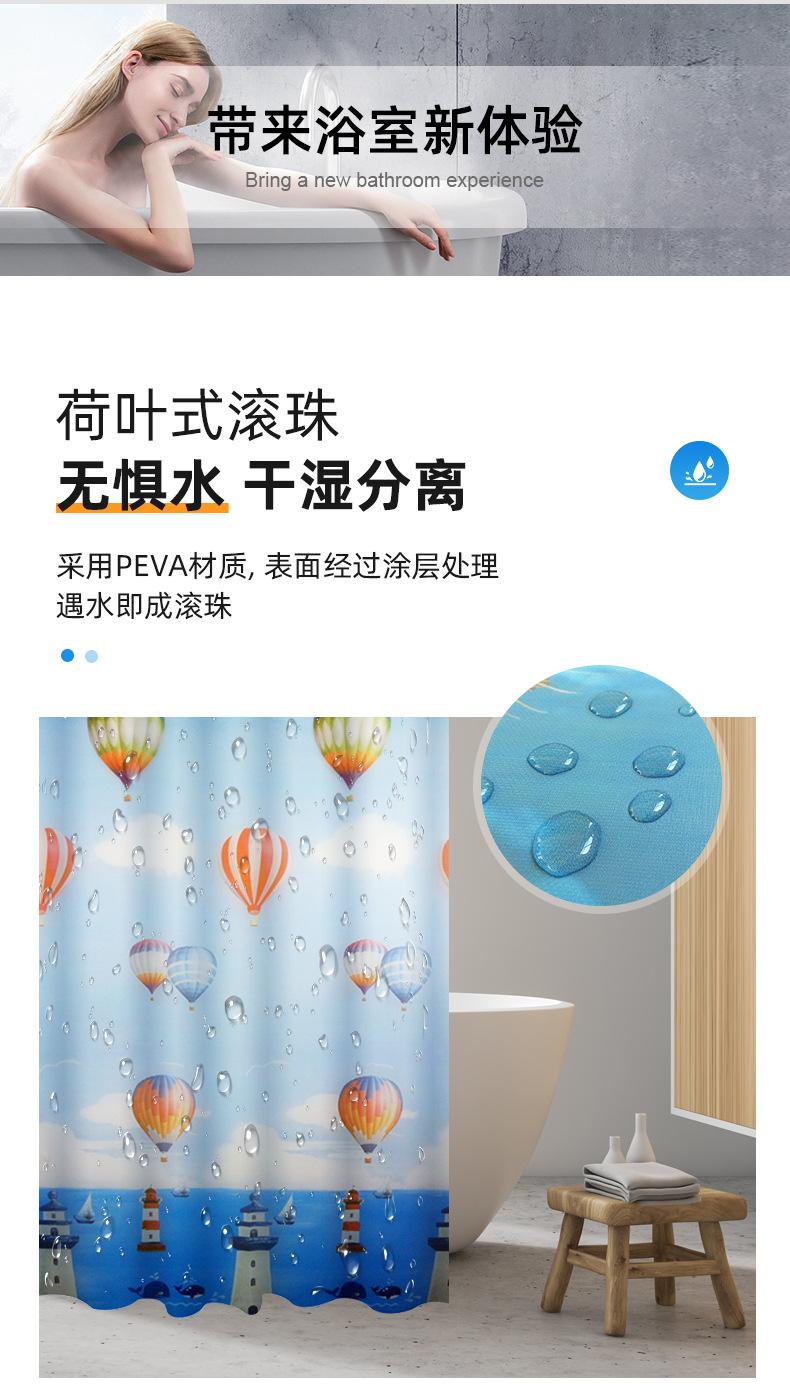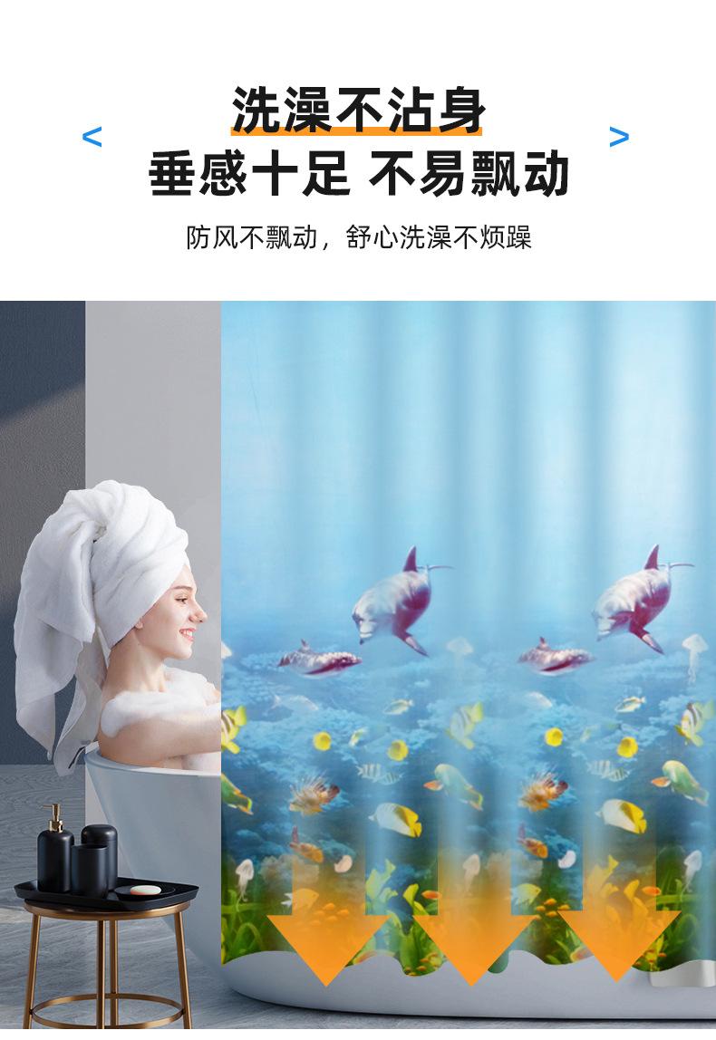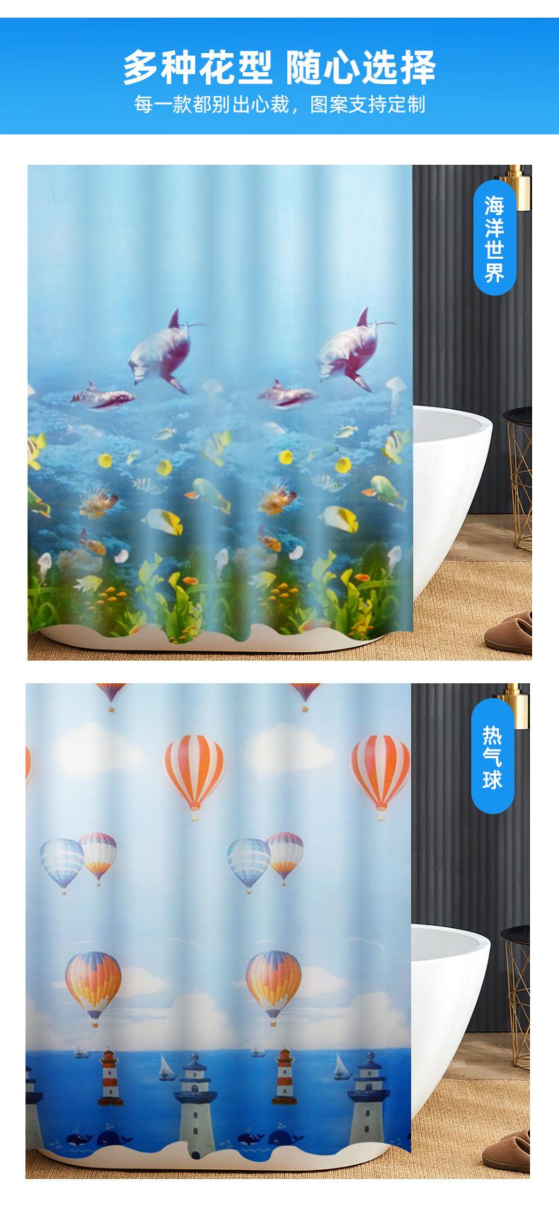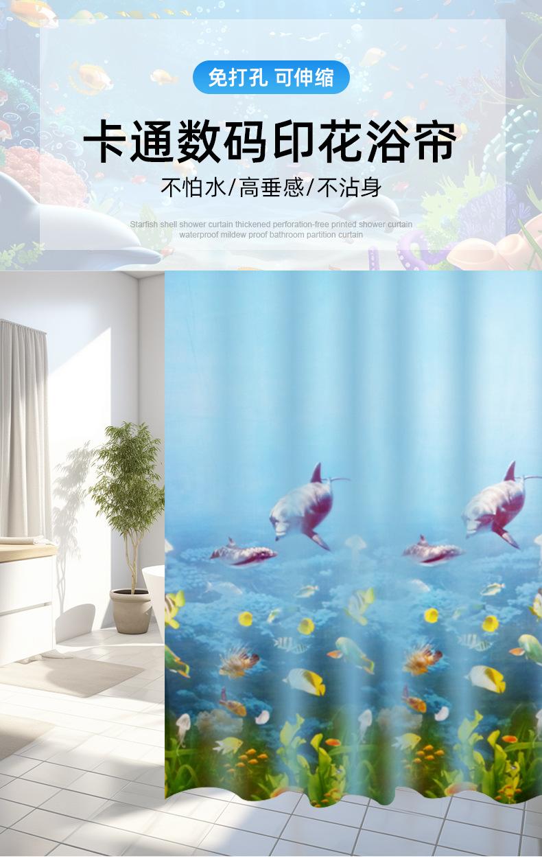 Cortina de Chuveiro Peva Transfronteiriça Mundo Oceânico Impressão Digital Cortina de Banheiro Sem Perfuração Impermeável e à Prova de Mofo Cortina de Chuveiro Espessada