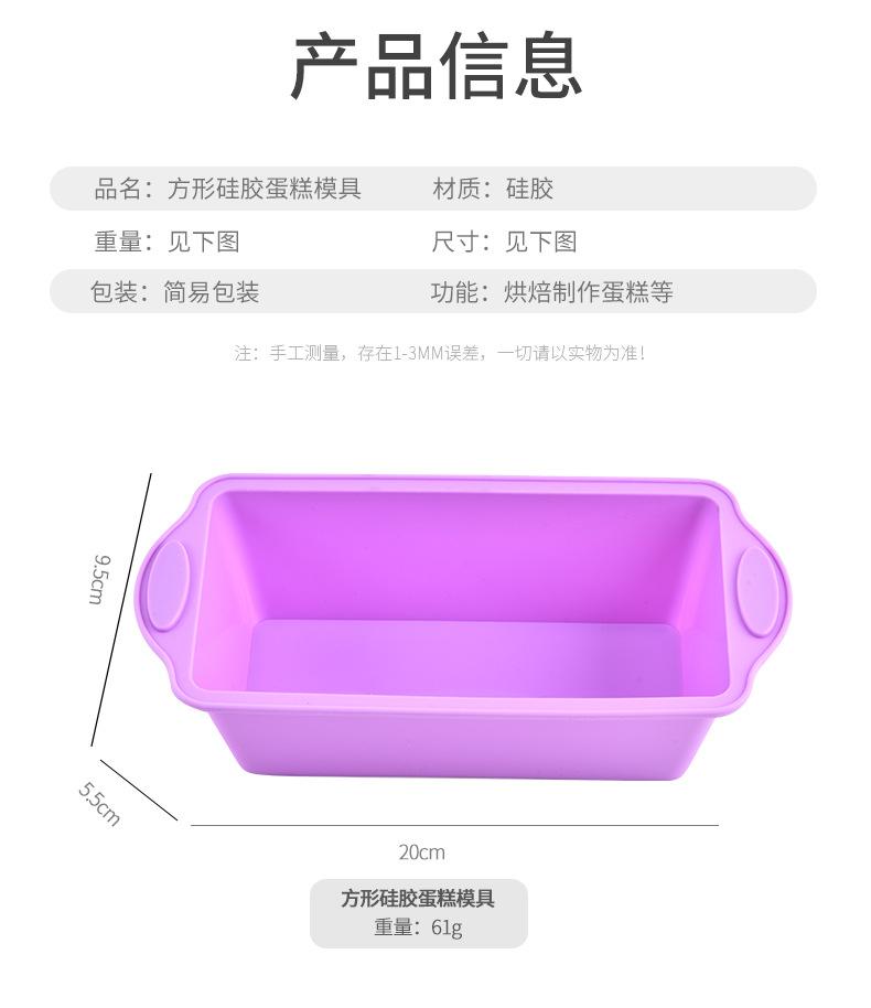 Fornecimento direto transfronteiriço Molde de bolo de silicone Forma retangular para assar pão Suprimentos para assar em casa DIY Molde para torrar pão