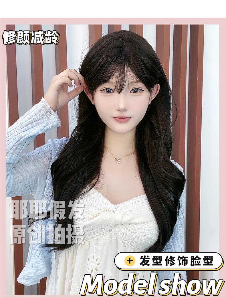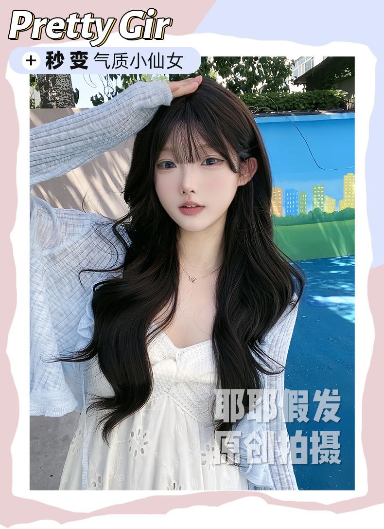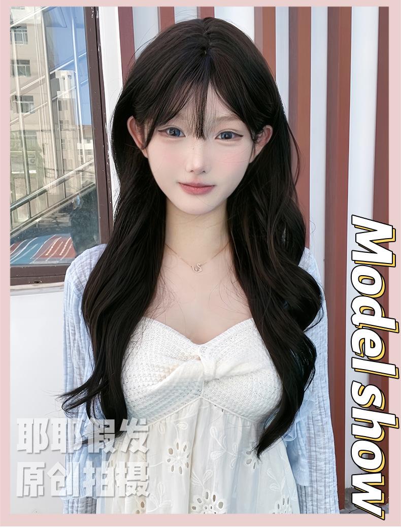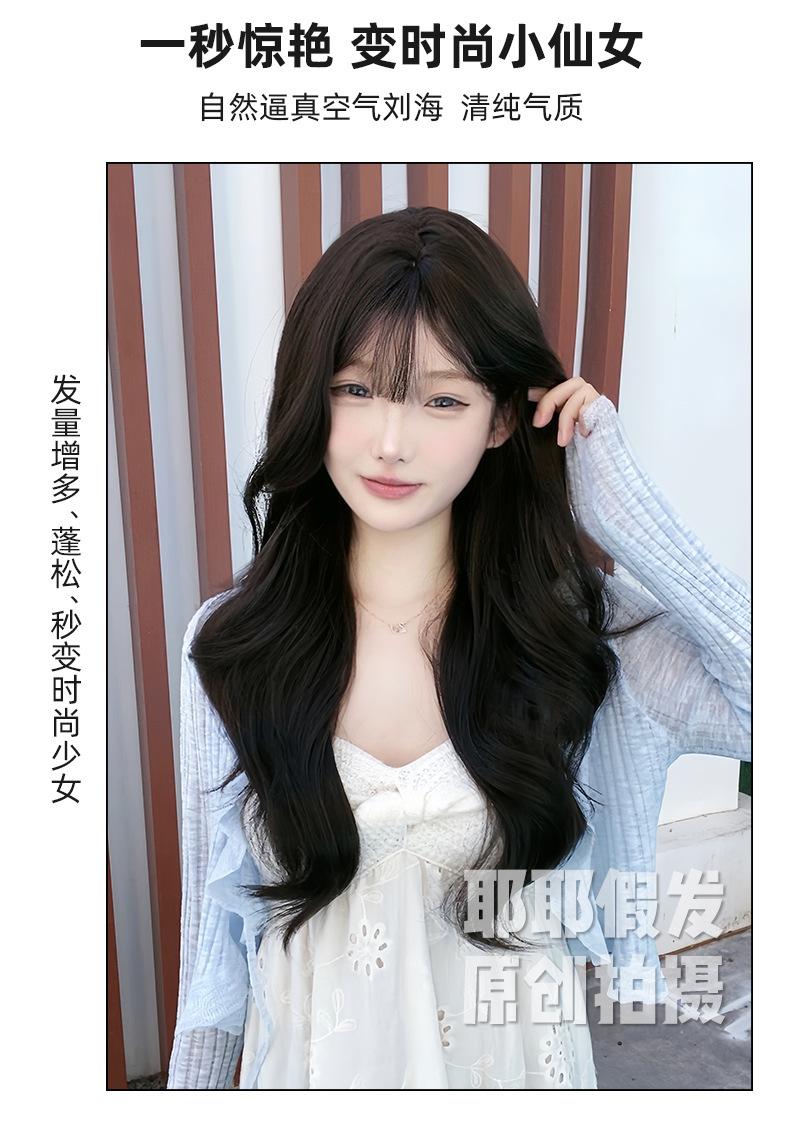 Peruca de Celebridade da Internet Atacado Transfronteiriço para Mulheres com Cabelo Longo, Cabelo Longo Ondulado Grande, Cabelo Médio e Longo, Conjunto de Peruca Natural de Cabeça Cheia