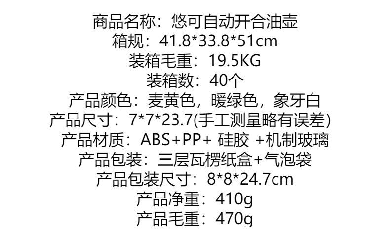 Pote de óleo doméstico Garrafa de óleo Garrafa de óleo de cozinha Pote de óleo Molho de soja de gergelim Pote de vinagre Abertura automática e garrafa de especiarias
