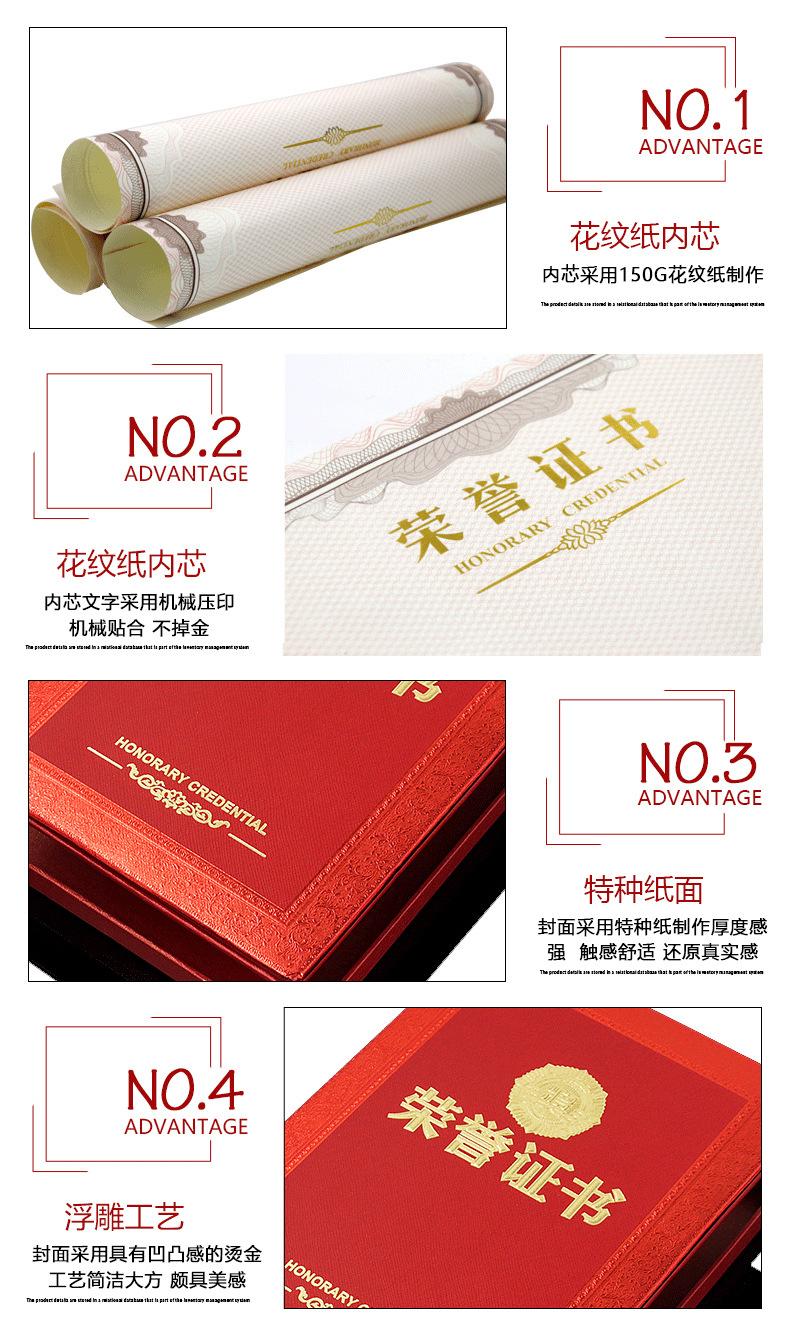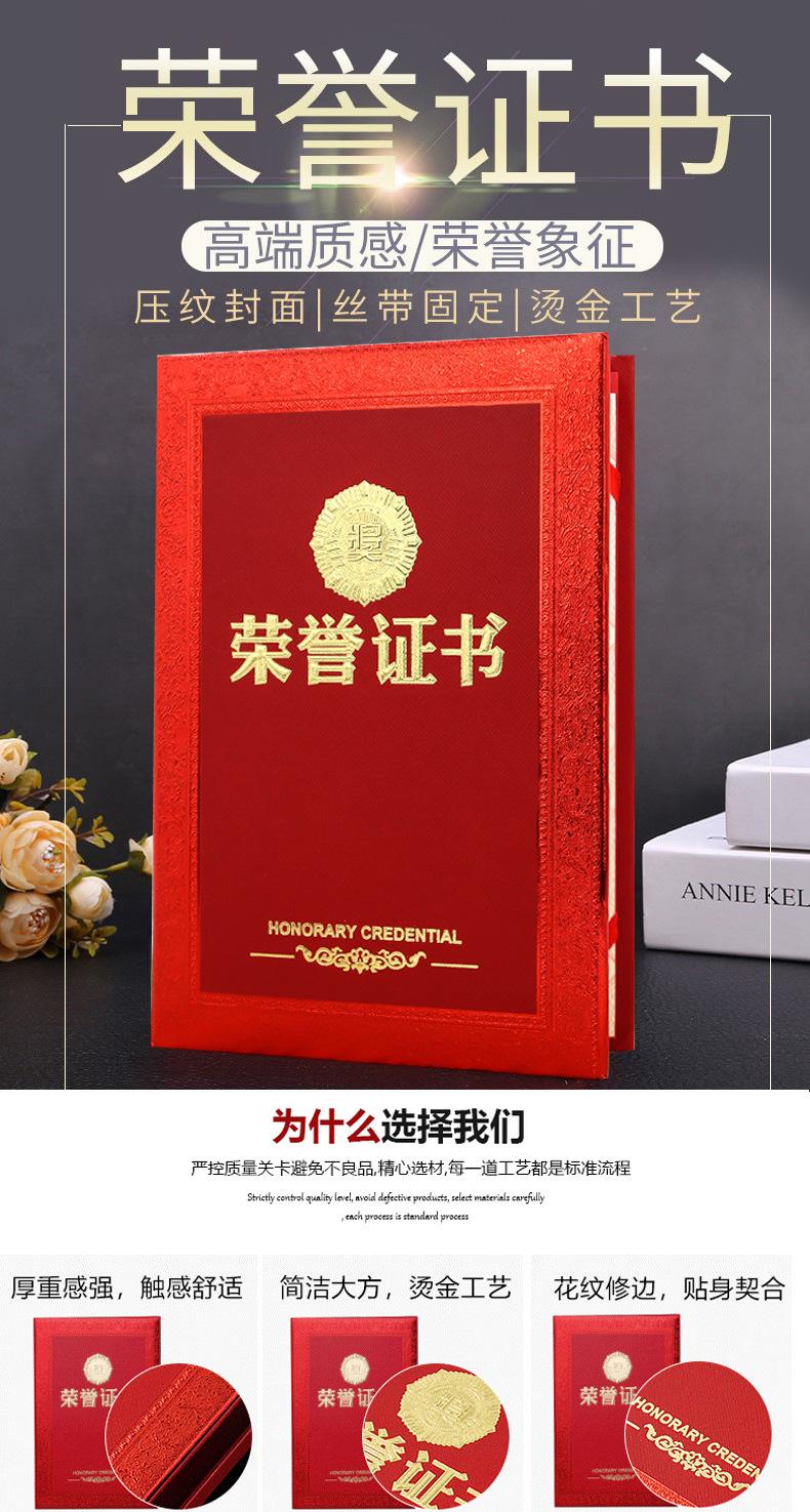 Certificado de Honra Capa de Treinamento Premiado Certificado de conclusão Impressão de página interna Bronzeamento em relevo Carta de nomeação a4 Certificado de honra