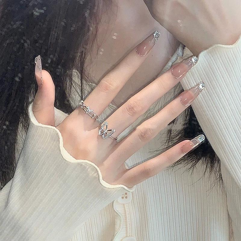 Anel borboleta camada dupla feminino luxo leve flash Diamante vento frio anel aberto simples design de nicho anel ajustável