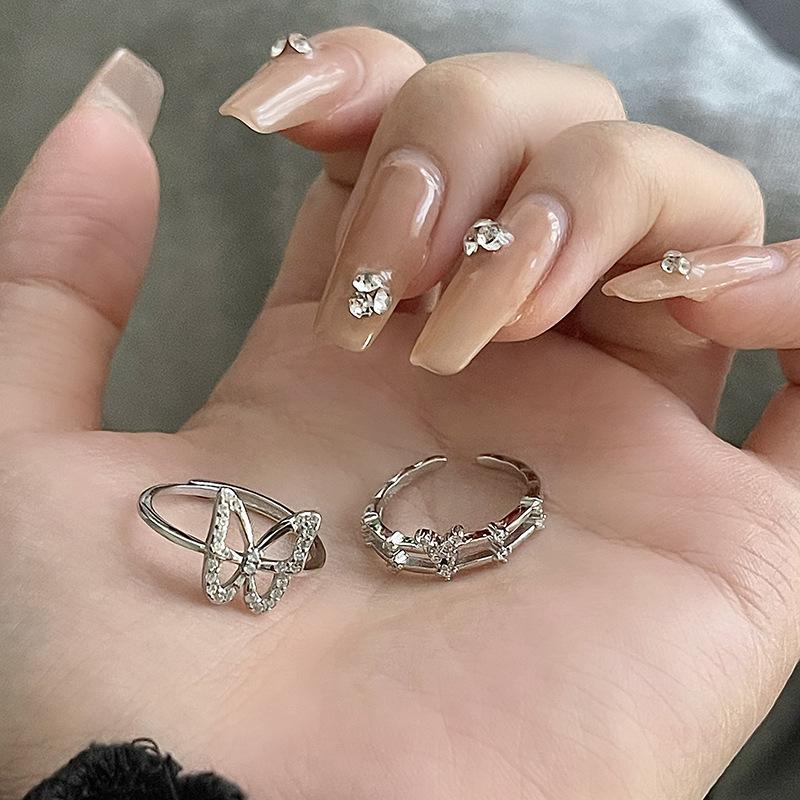 Double-layer diamond butterfly ring, R39 ring, Ring [double-layer diamond butterfly + R39]]