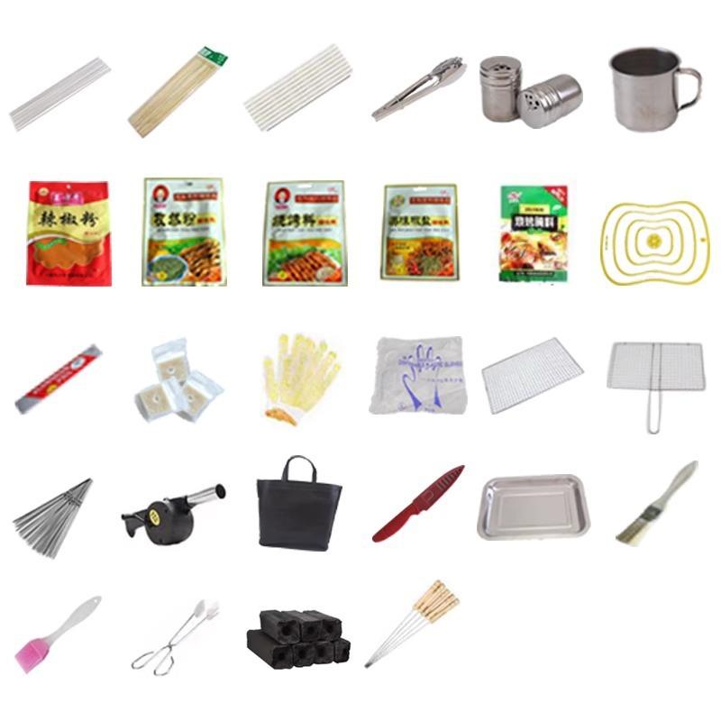 Pacote de suprimentos para ferramentas de churrasco Materiais para churrasco comercial Equipamentos para acampamento ao ar livre Conjunto completo de acessórios para churrasco