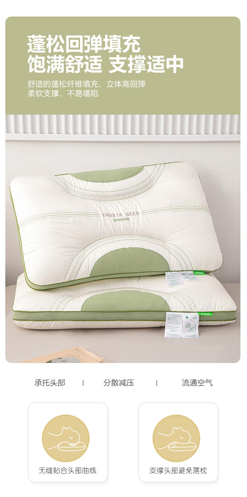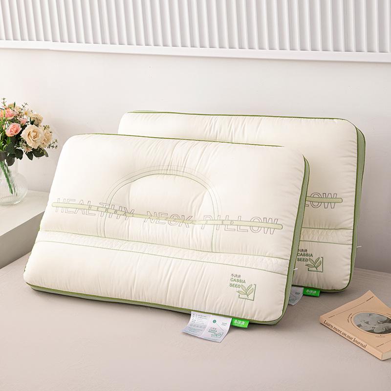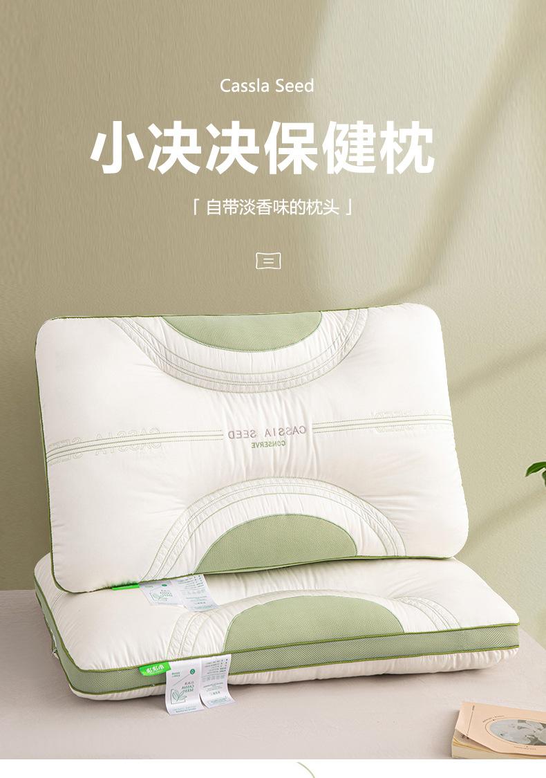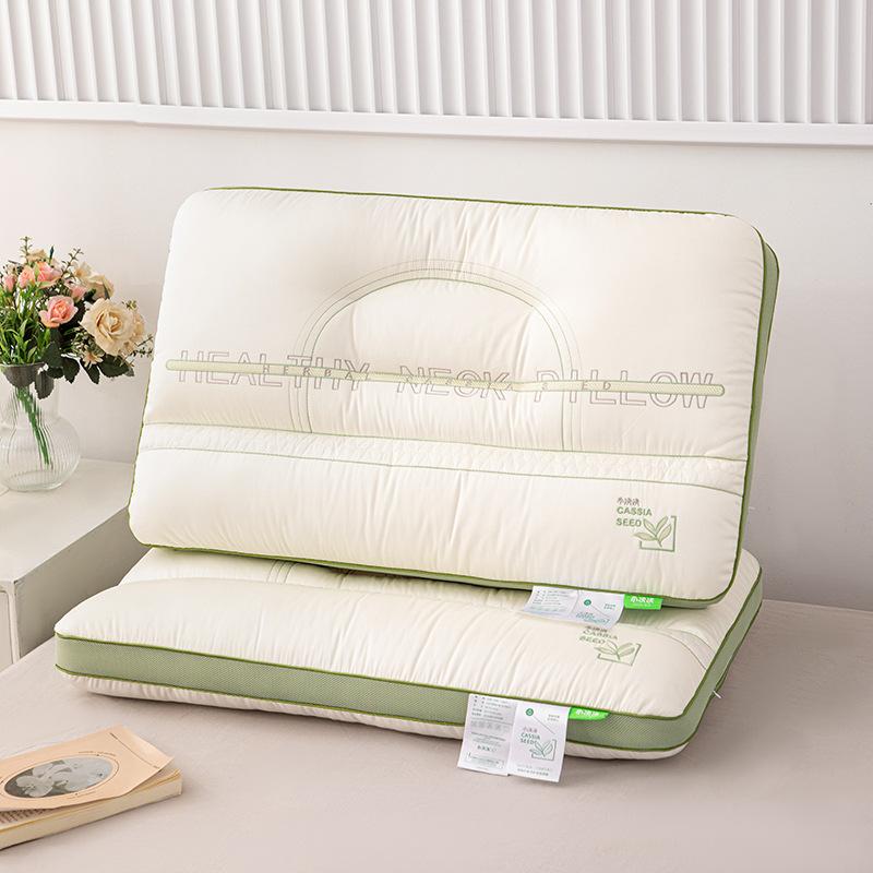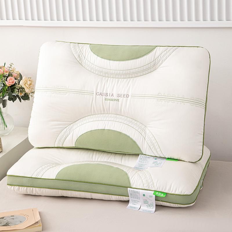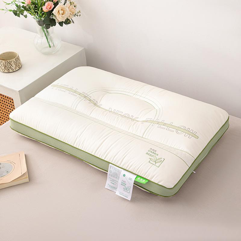 Almofada de algodão com semente de cássia, amiga da pele, proteção para o pescoço, travesseiro de liberação de pressão com fragrância, travesseiro alto, travesseiro tridimensional de algodão respirável