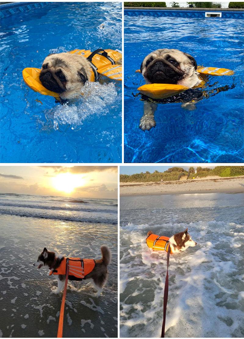 Tipo de tecido: Tecido Oxford 420D, forro criptografado, malha sanduíche respirável, Velcro padrão europeu As costas adotam um design de asas de anjo e faixa refletiva, o que aumenta a diversão da natação do cão e ajuda a localizar o cão na água.