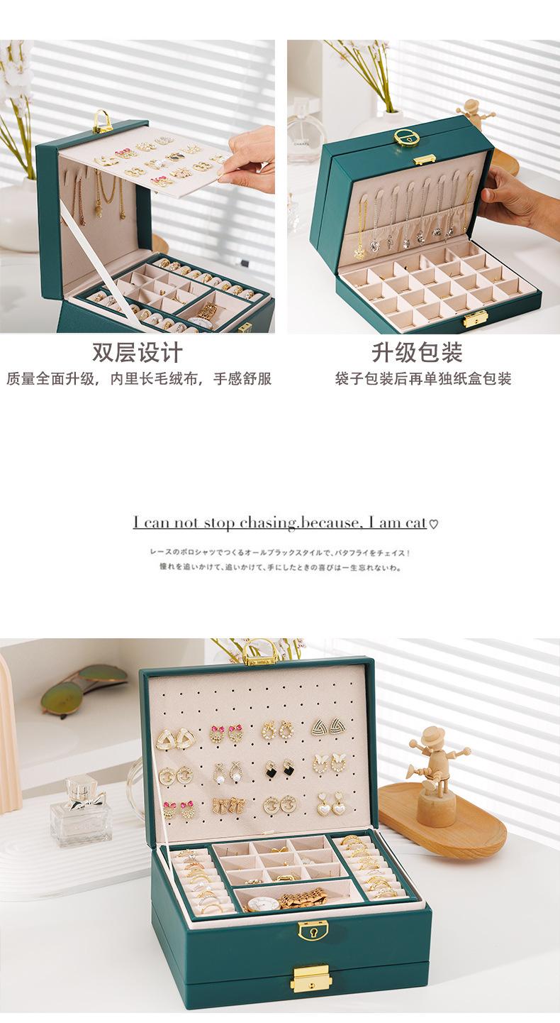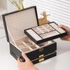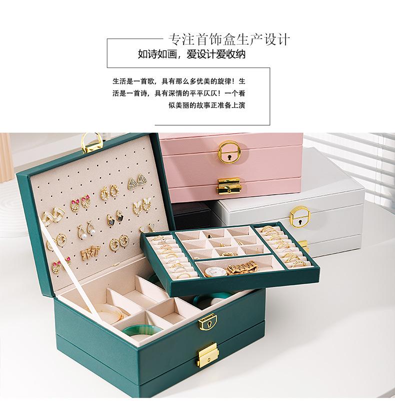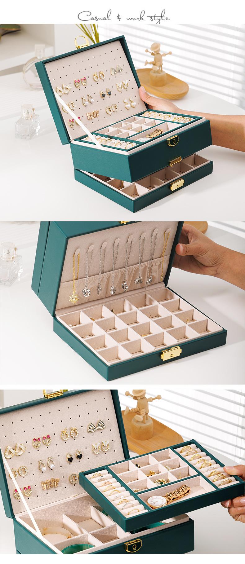 Nova caixa de joias de quatro camadas de grande capacidade Caixa de armazenamento Caixa de armazenamento de joias de couro Caixa de armazenamento de joias de brincos domésticos Anel de armazenamento de joias Caixa