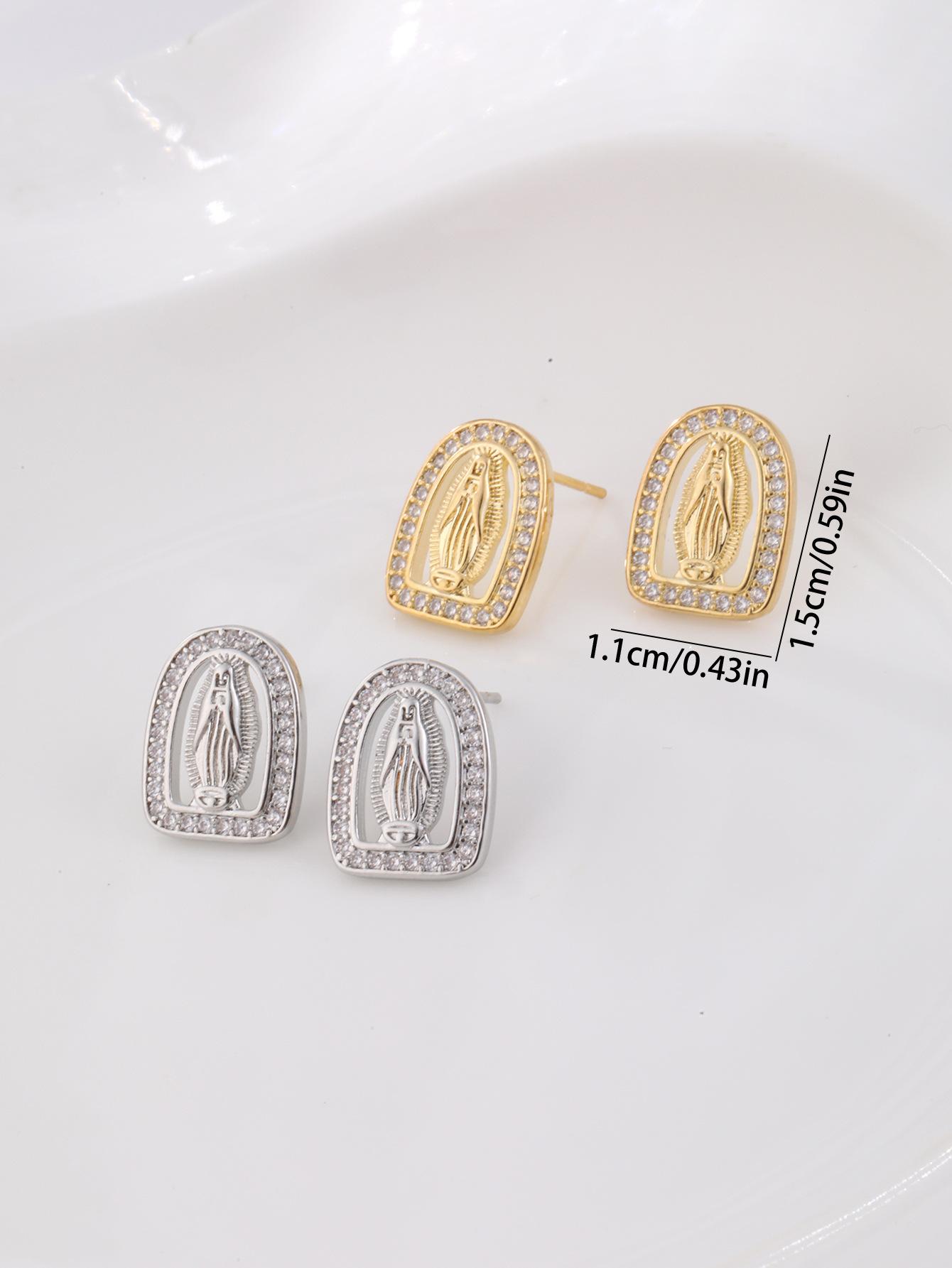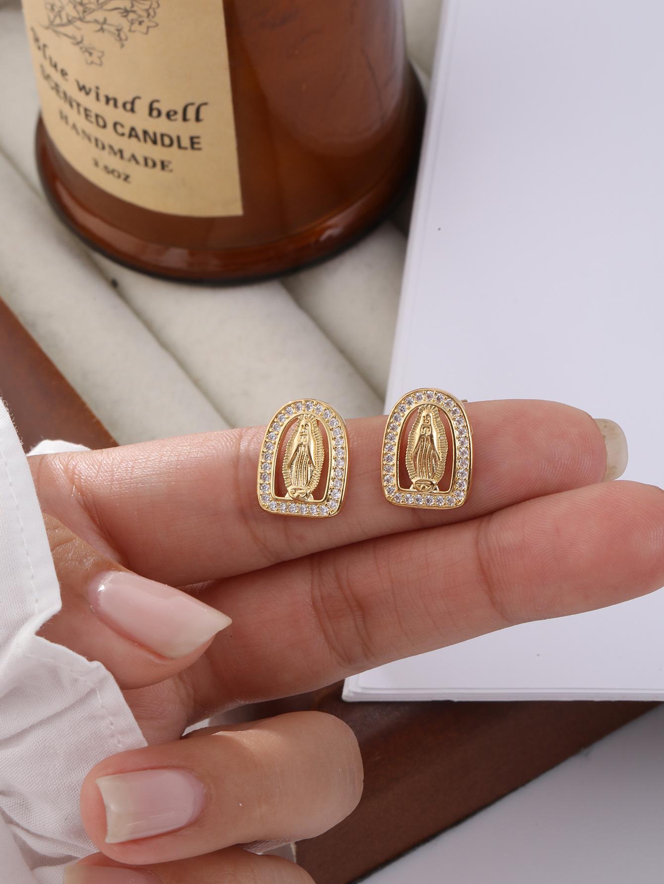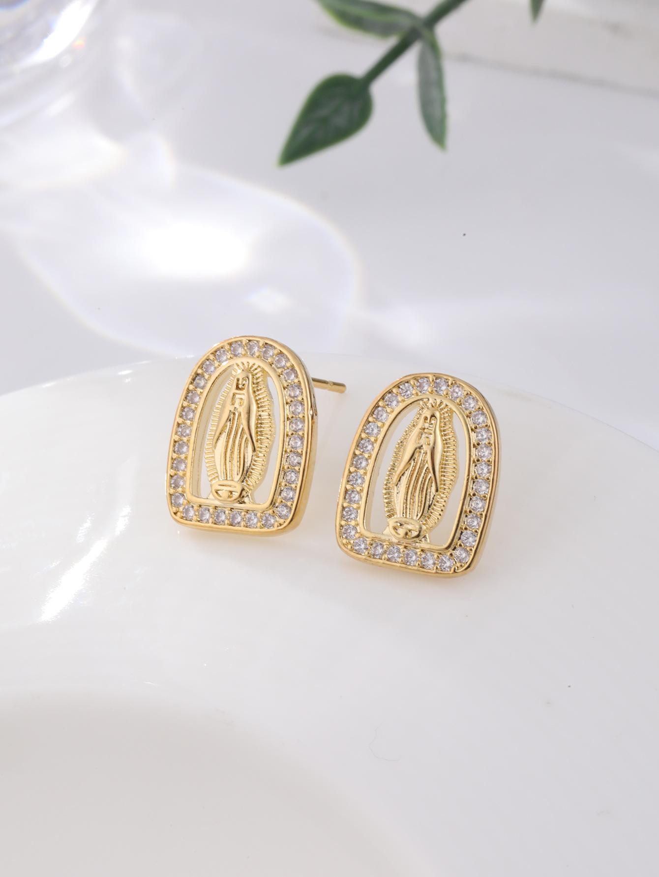 Brincos europeus e americanos de cobre com zircônia incrustada, redondos geométricos, brincos da Virgem Maria, brincos vintage da moda, brincos requintados para mulheres