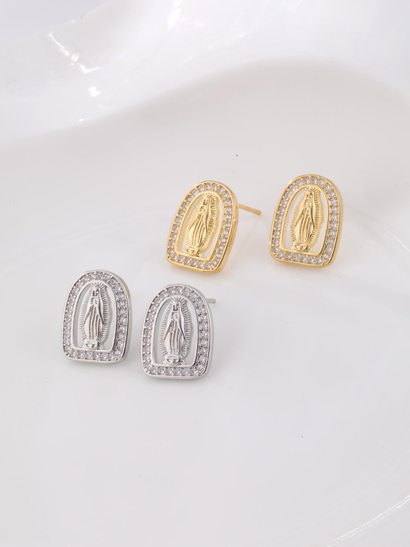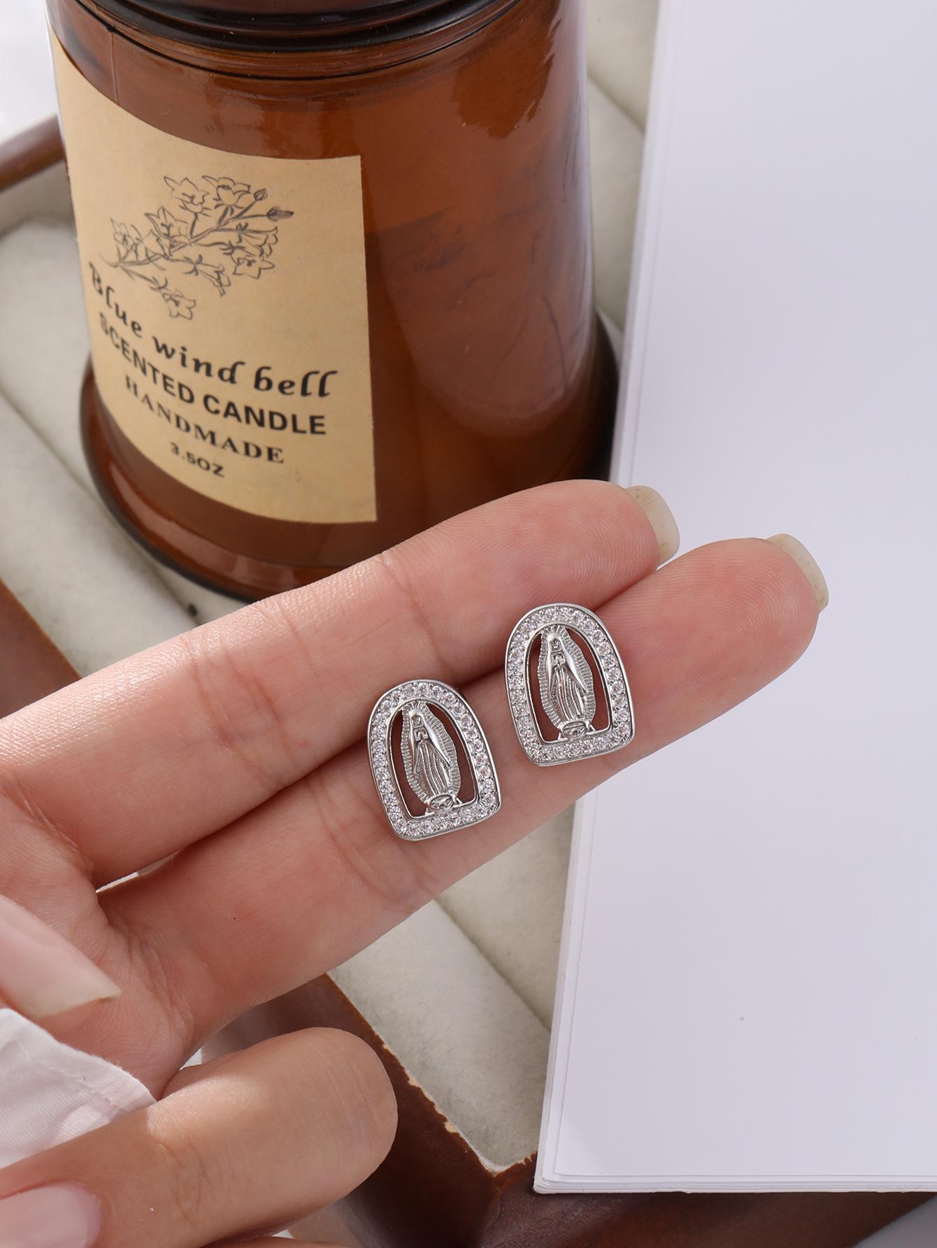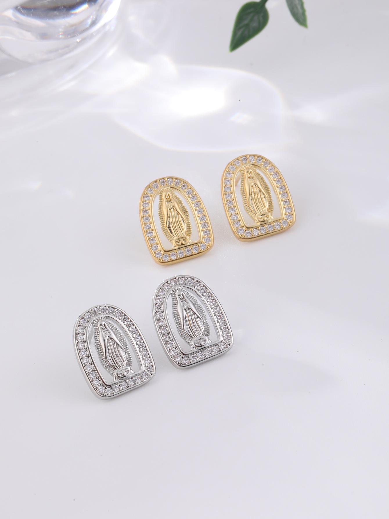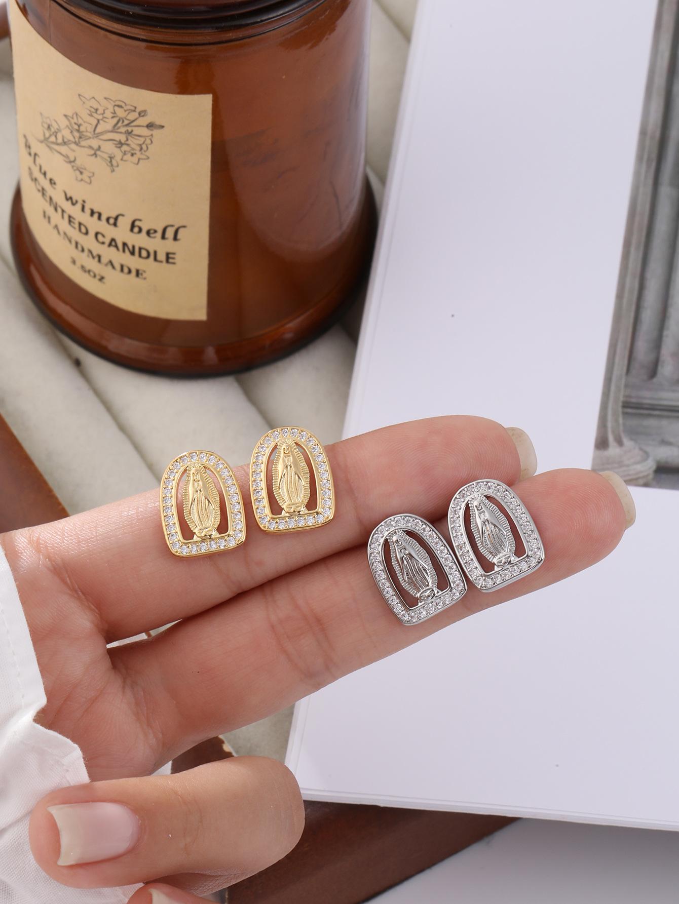 Brincos europeus e americanos de cobre com zircônia incrustada, redondos geométricos, brincos da Virgem Maria, brincos vintage da moda, brincos requintados para mulheres