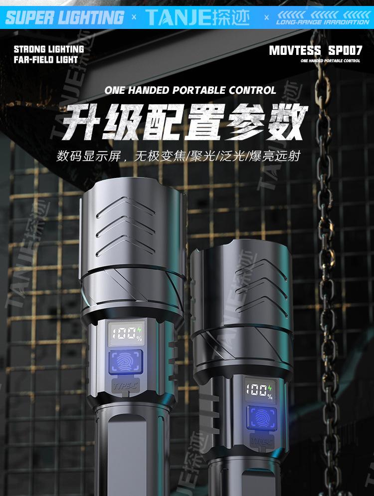 Nova lanterna LED portátil recarregável super brilhante ao ar livre zoom de emergência vida útil da bateria lanterna de longo alcance
