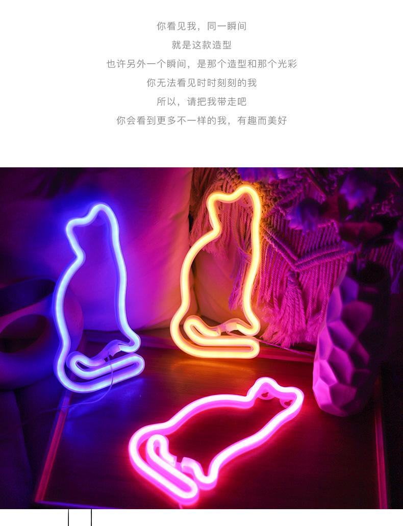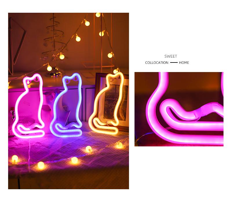 Cross-border novo LED neon gatinho modelagem luz luz noturna criativa decoração do quarto atmosfera luz