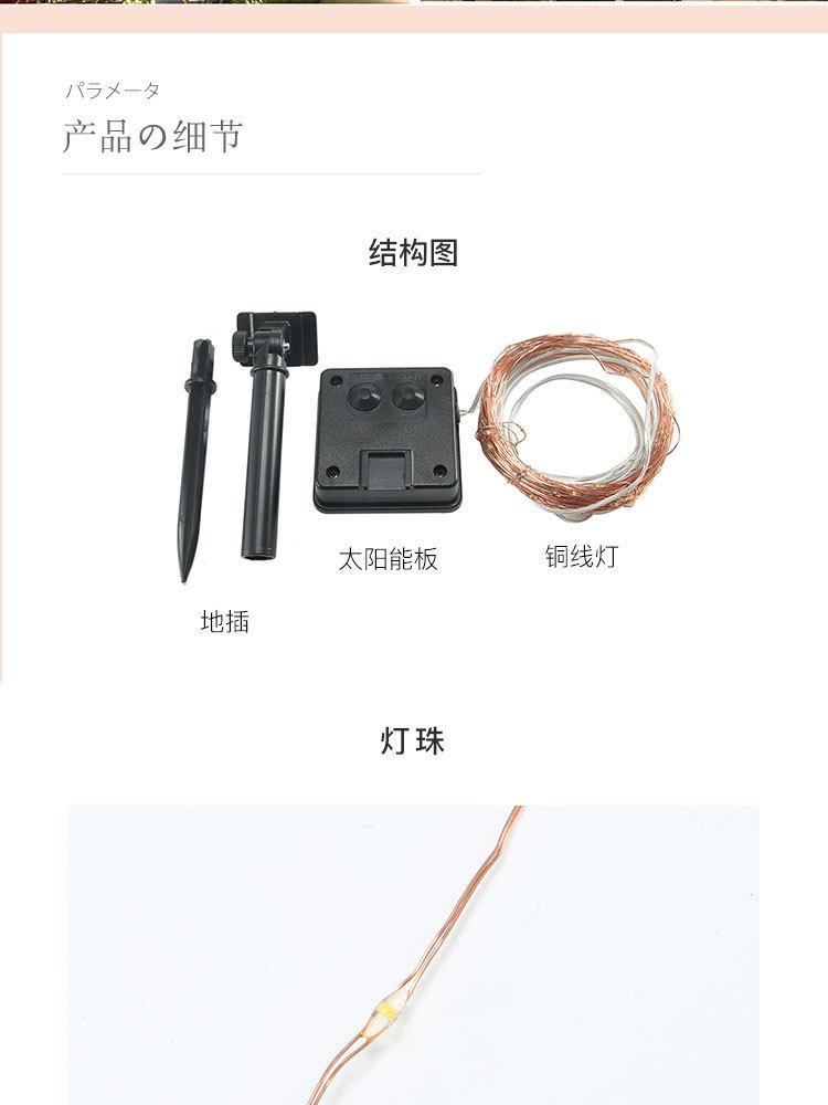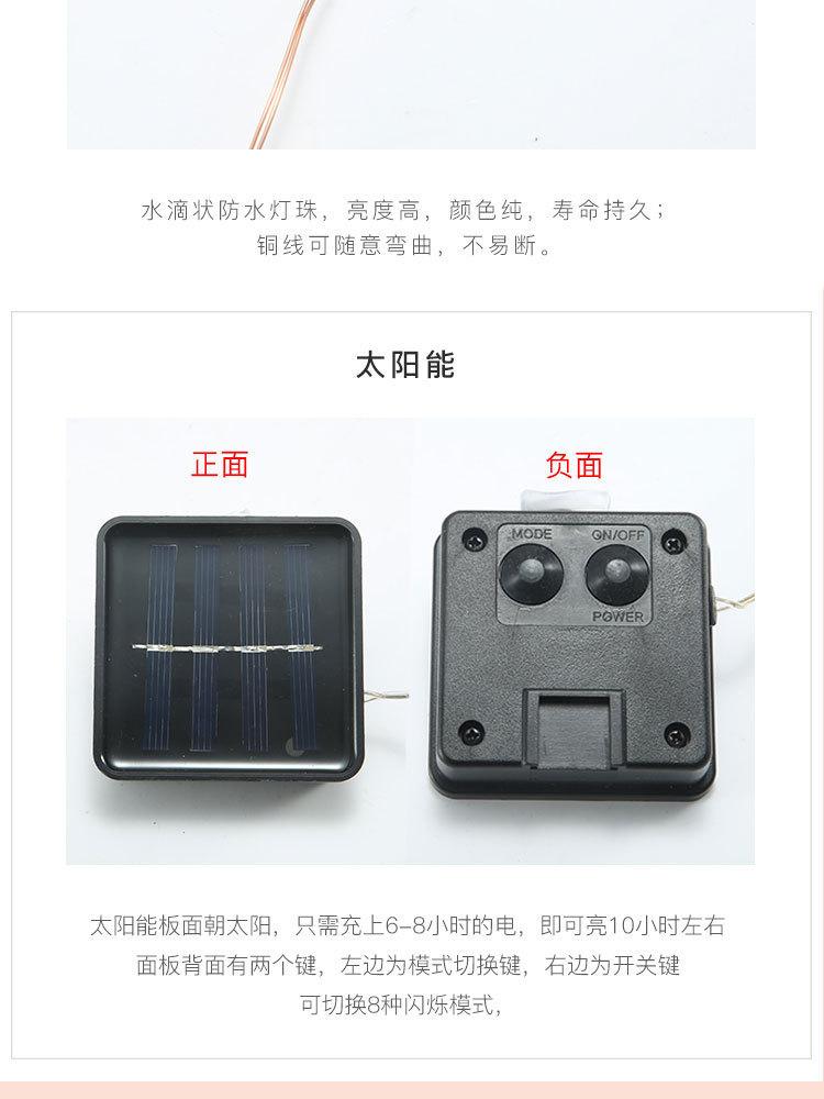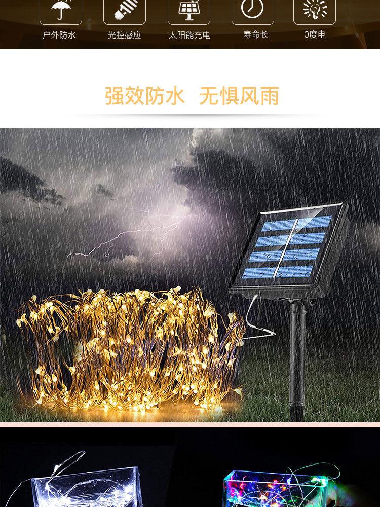 Transfronteiriço levou lâmpada de fio de cobre solar ao ar livre à prova d'água corda de lâmpada grande atacado lâmpada decorativa de Natal fio de cobre pequena lâmpada colorida