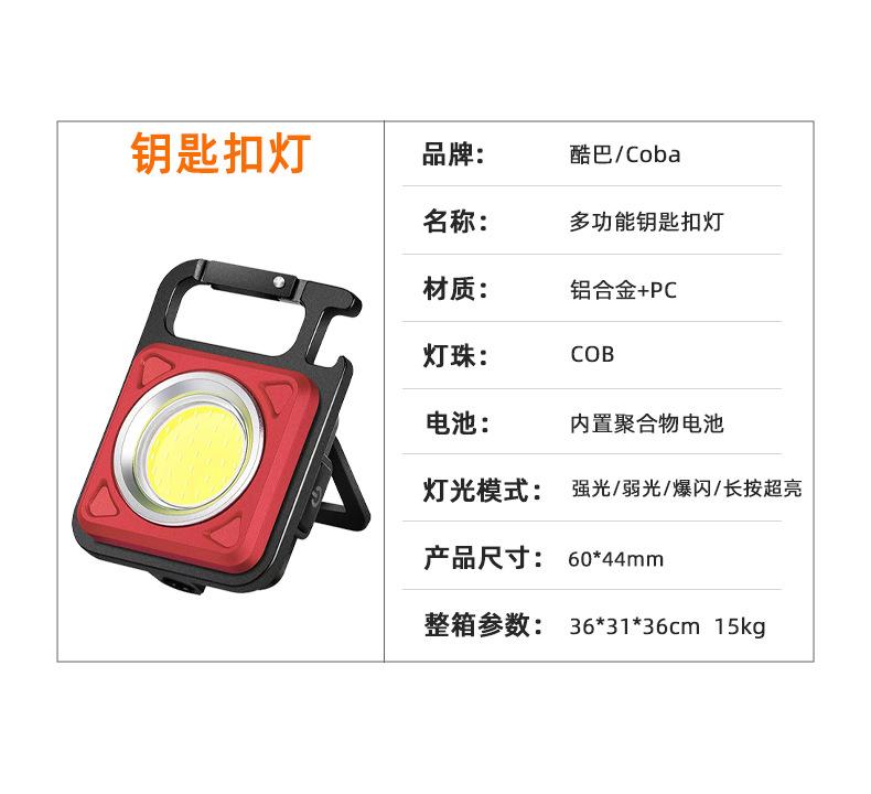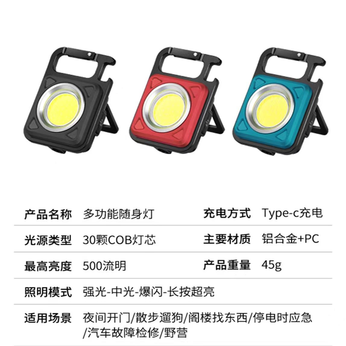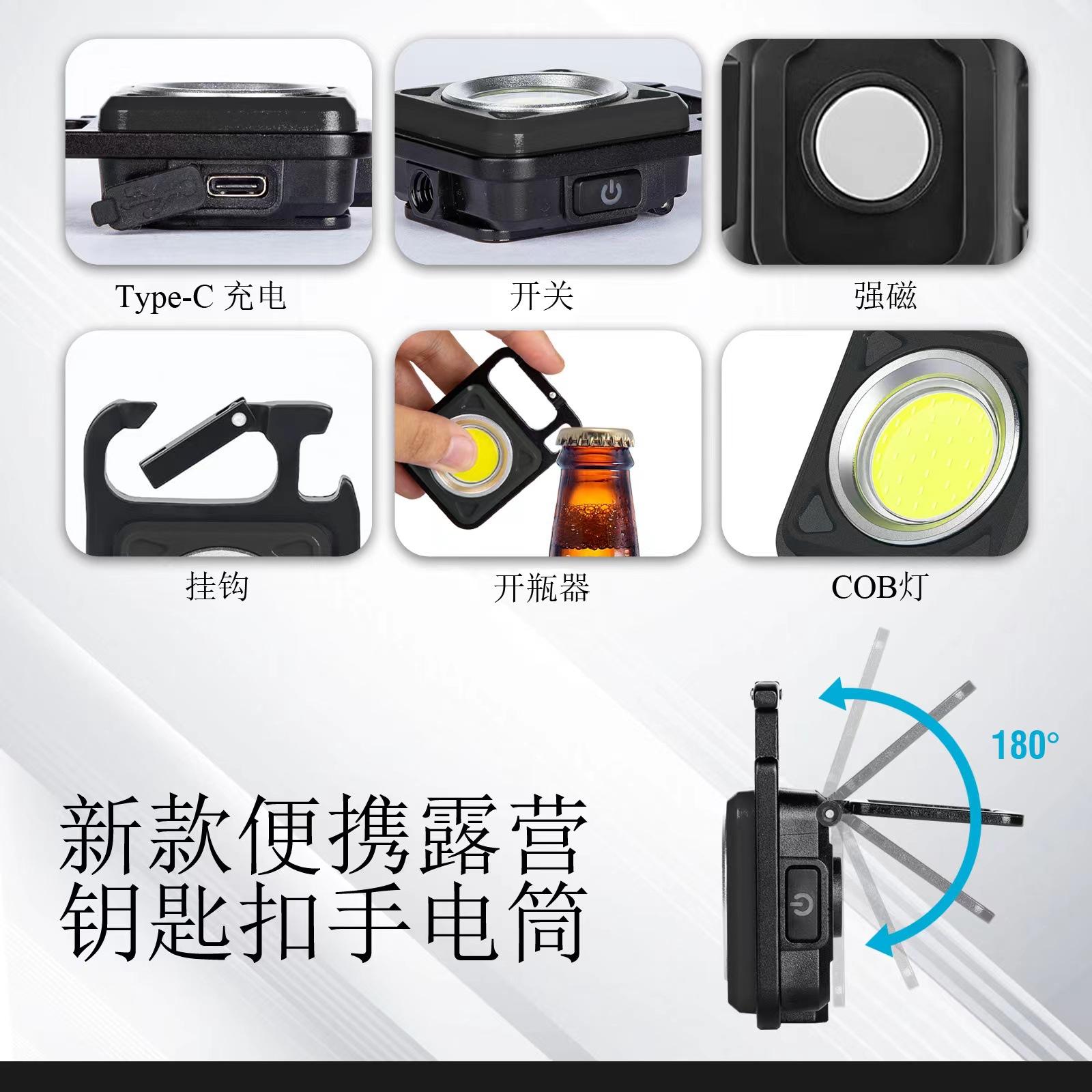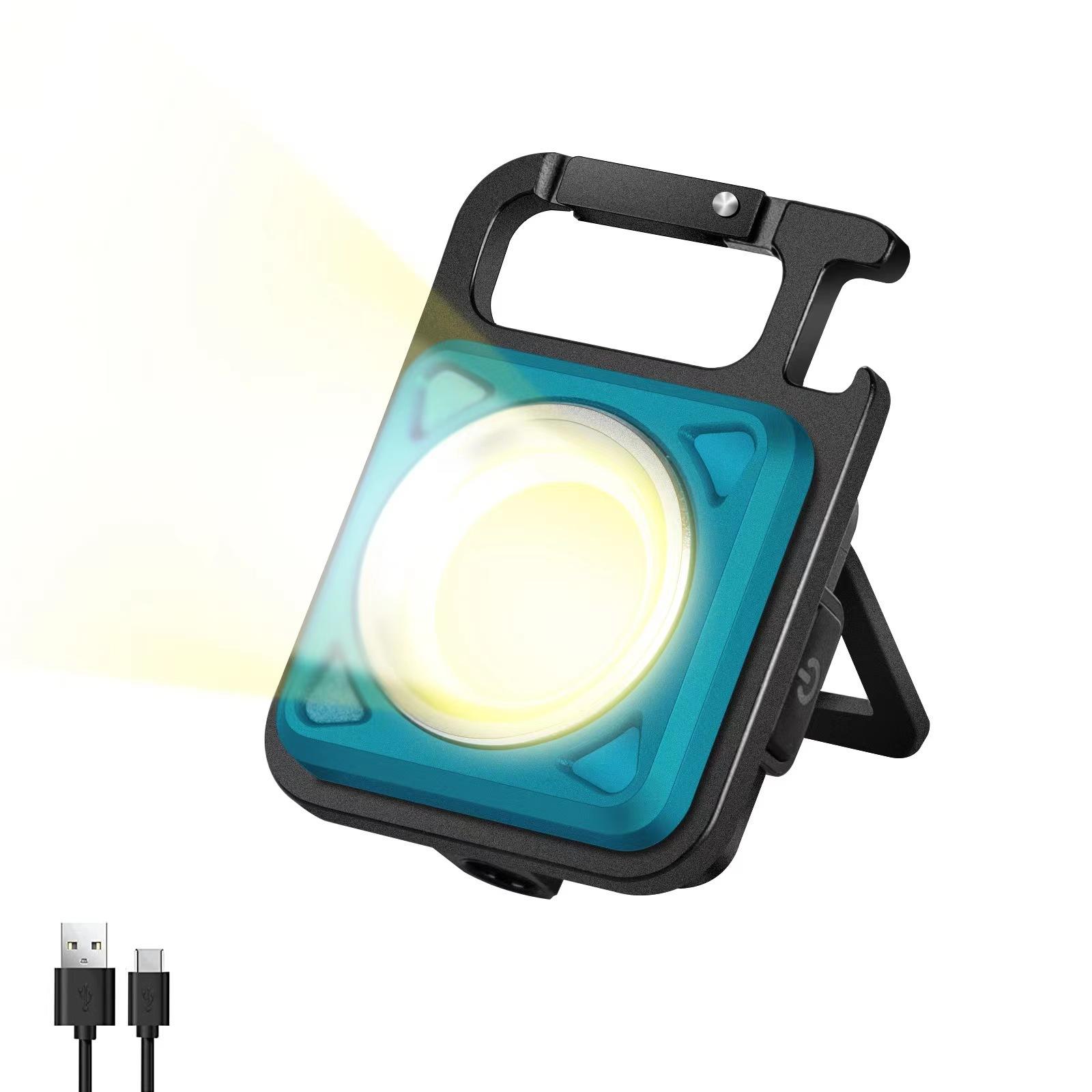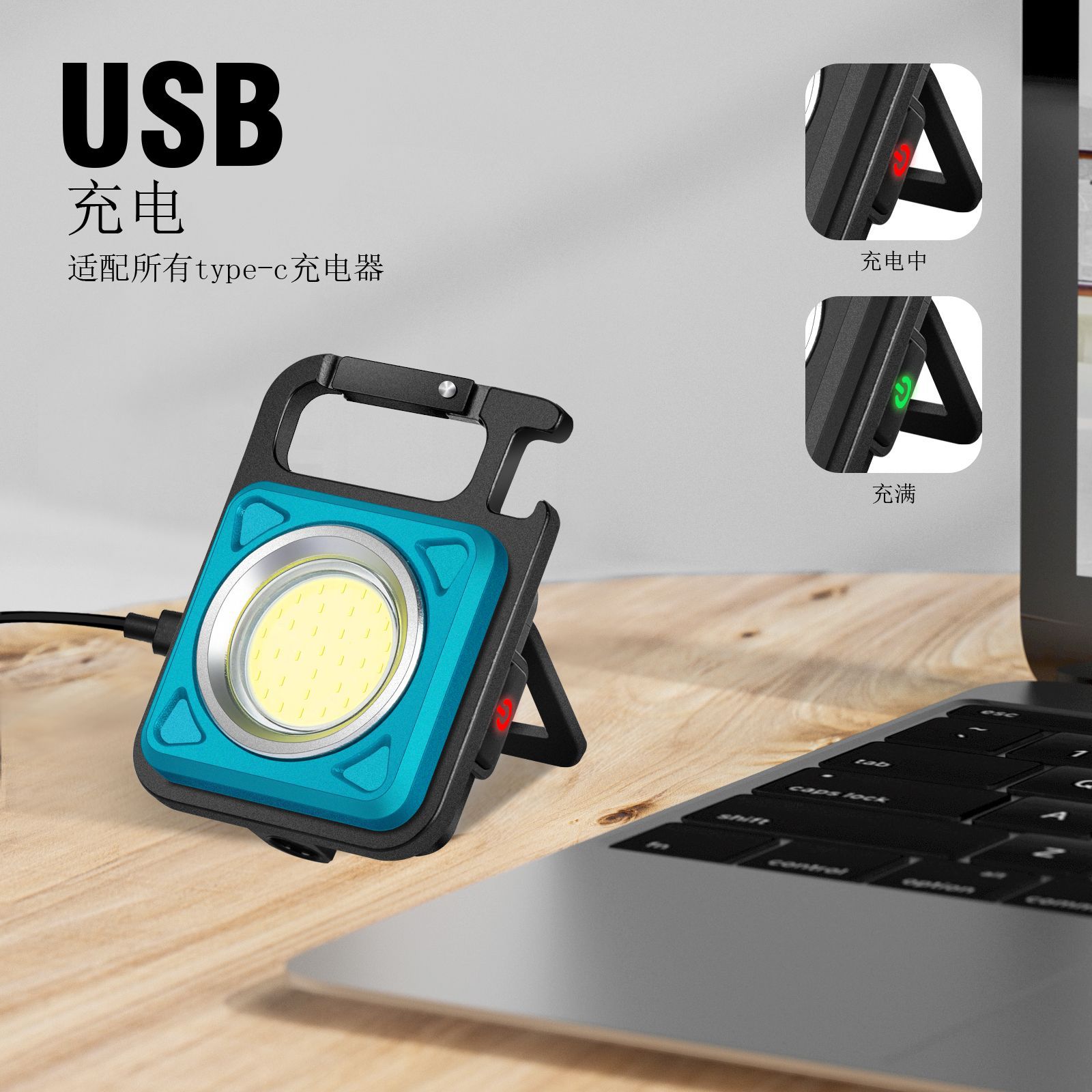 Multifuncional portátil COB mini luz forte chaveiro luz Type-C recarregável luz de trabalho lanterna ao ar livre