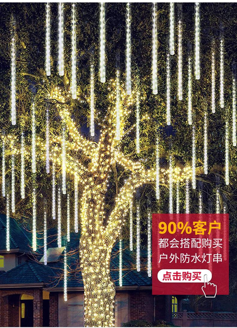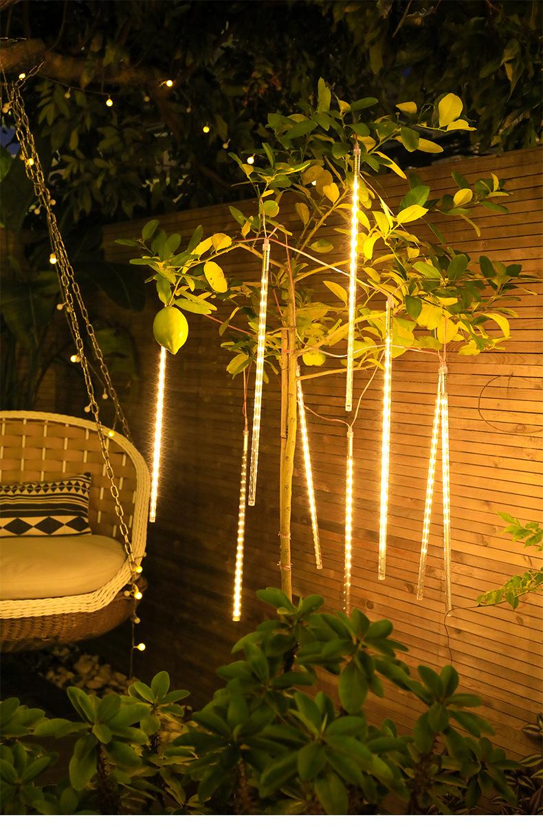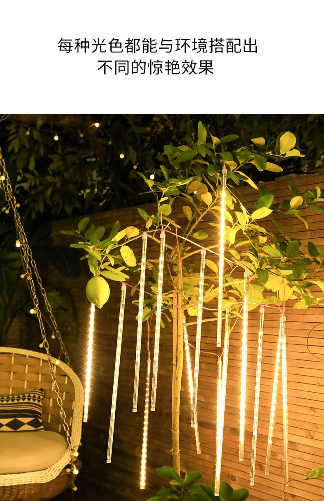 Chuva de meteoros levou luz solar corda colorida ao ar livre iluminação à prova d'água decoração pendurado árvore luz colorida decoração de árvore