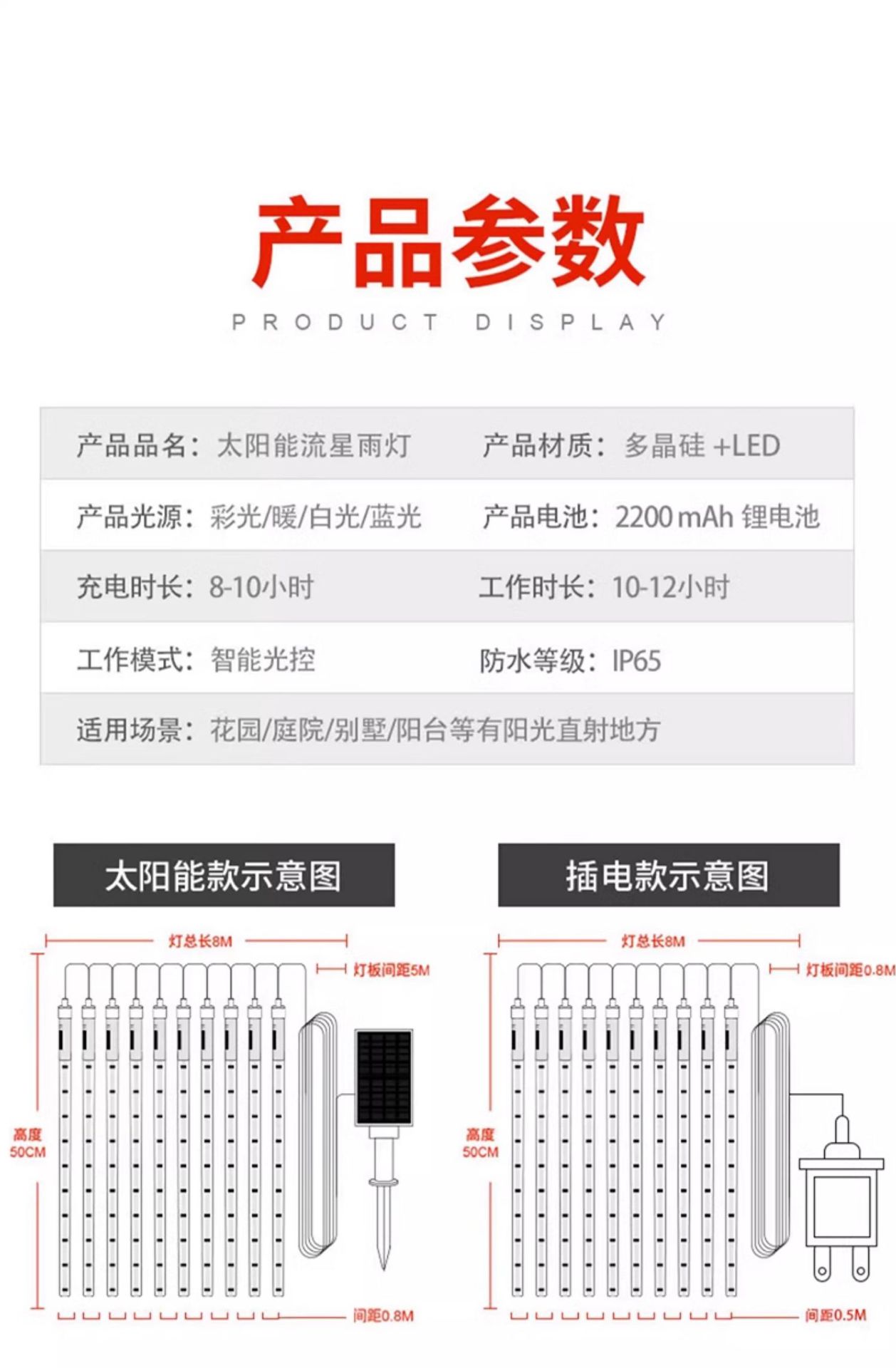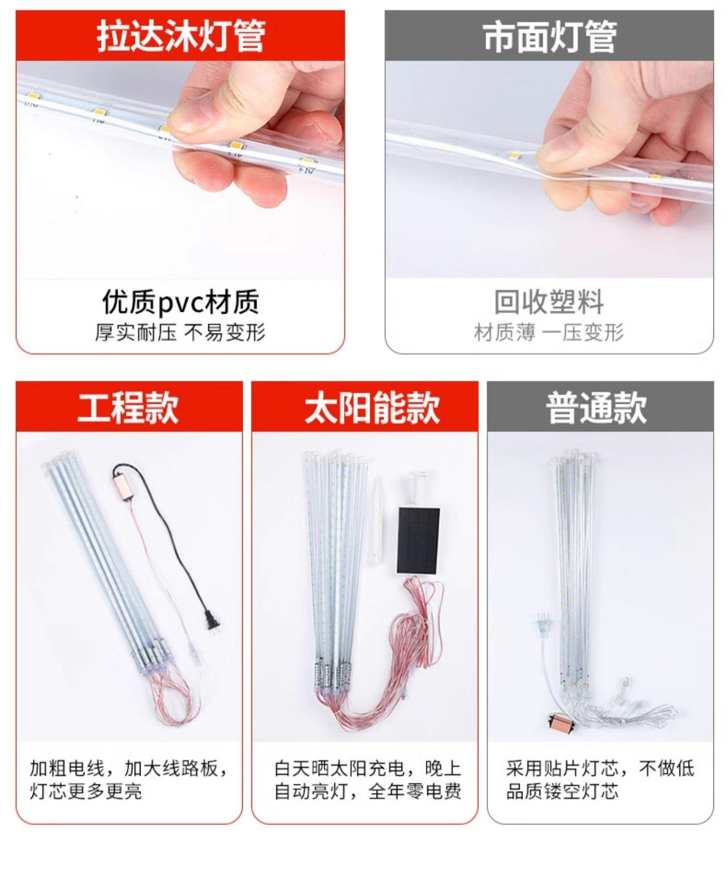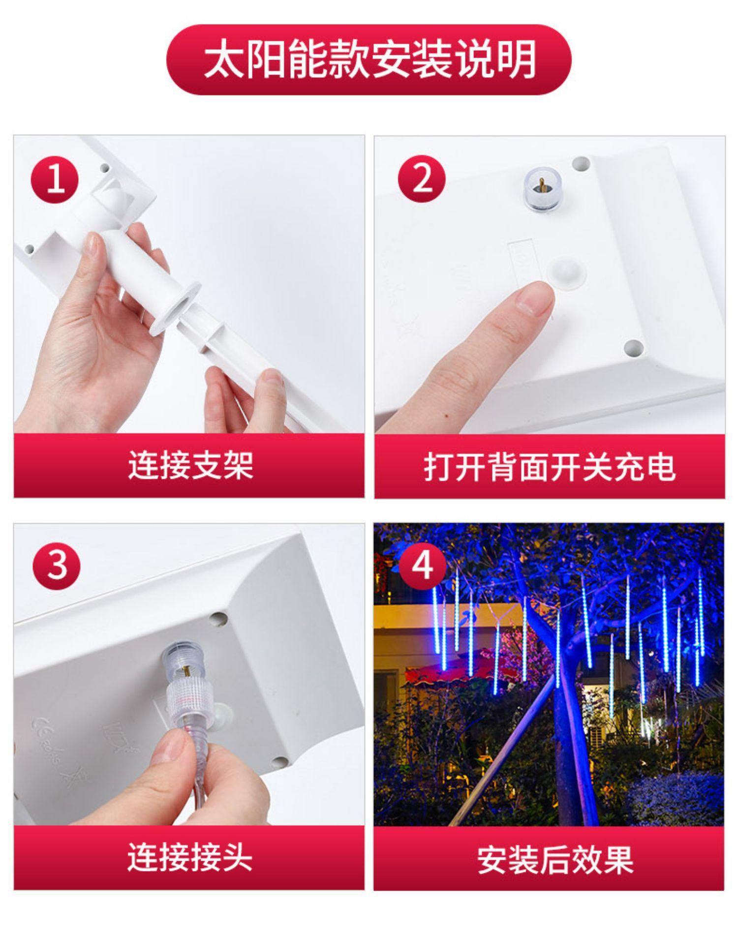Chuva de meteoros levou luz solar corda colorida ao ar livre iluminação à prova d'água decoração pendurado árvore luz colorida decoração de árvore