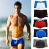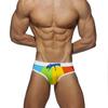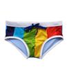 Calções de Banho Masculinos Transfronteiriços de Comércio Exterior Cores Combinadas Arco-Íris Azul Calções de Banho com Copo Anti-Embaraço Cintura Baixa Sexy Europeu e Americano