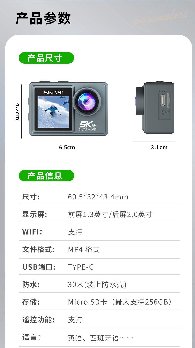 Nova câmera esportiva 5K transfronteiriça 4K anti-vibração para filmagem ao ar livre, gravador para capacete de ciclismo, câmera de esqui de fábrica