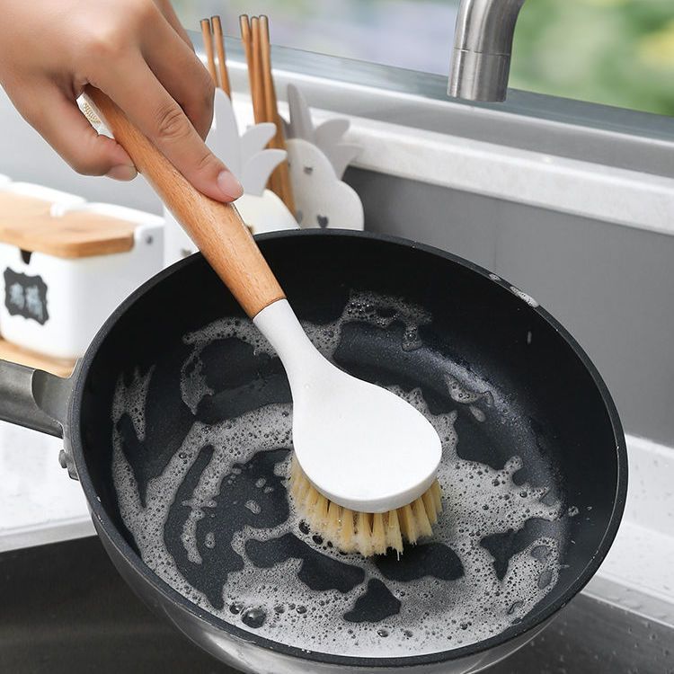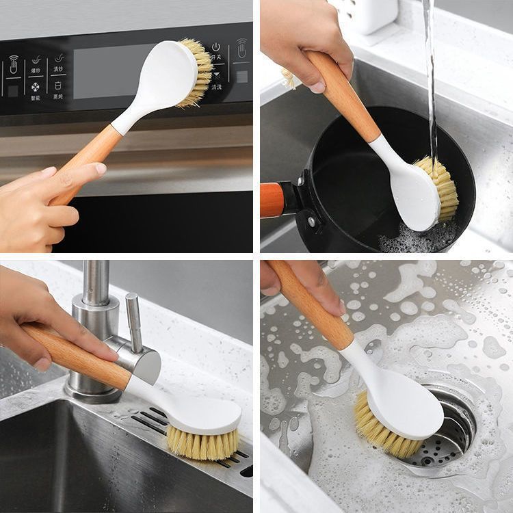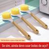 Escova de pote de sisal natural, escova de pote sem óleo, cabo longo, tigela de pote, escova de limpeza de cozinha, escova de limpeza de artefatos de pote