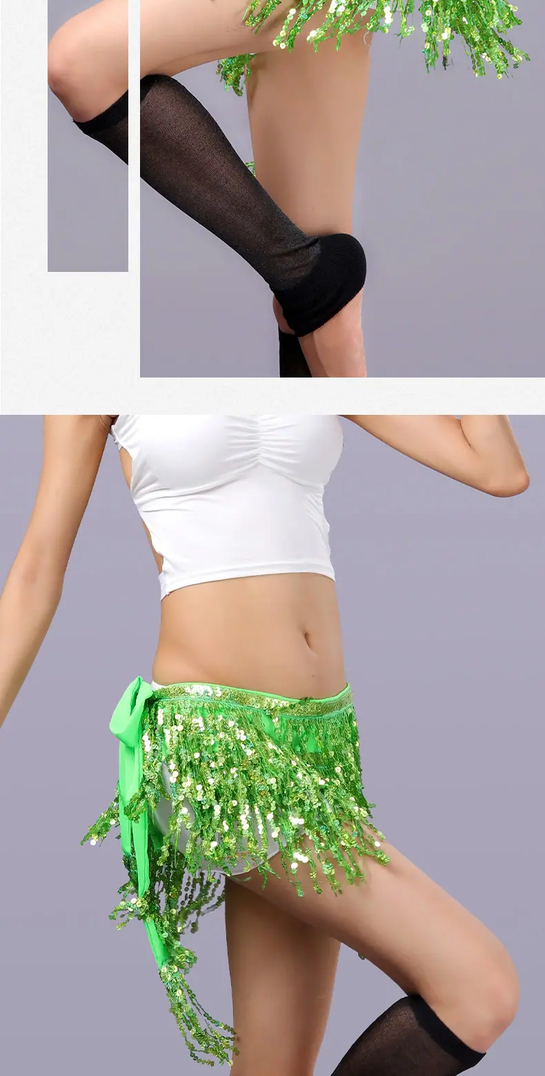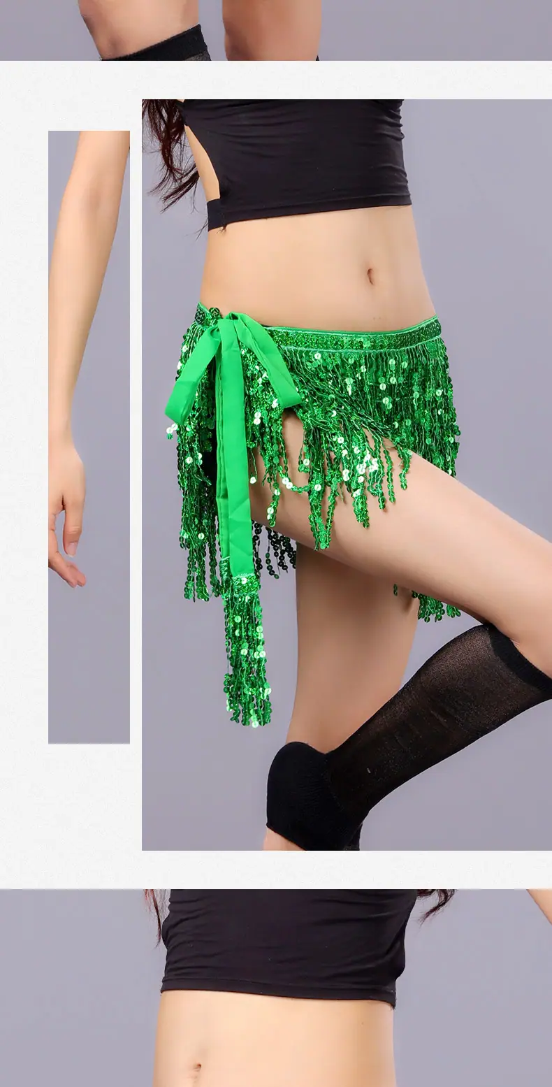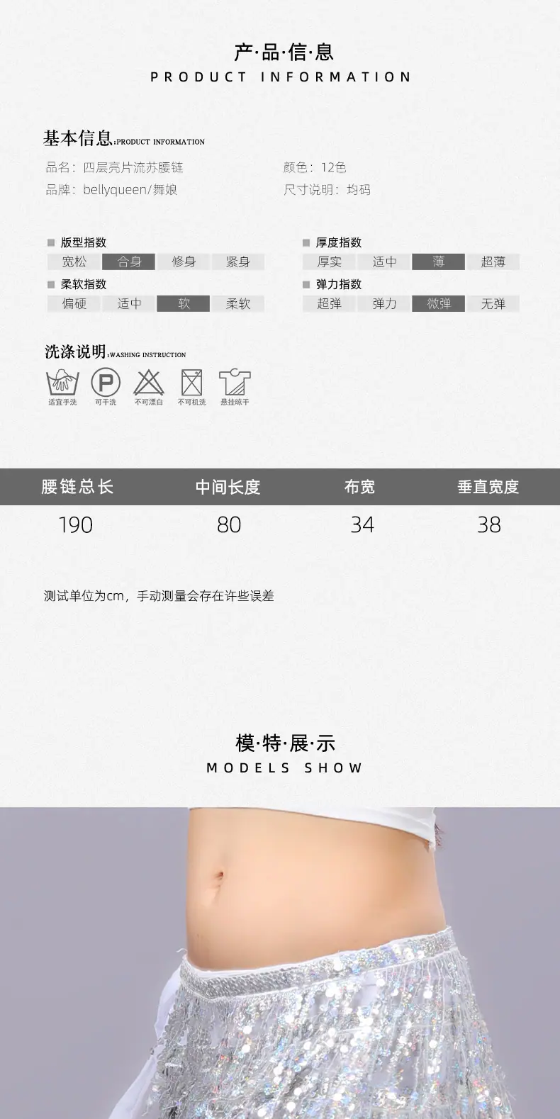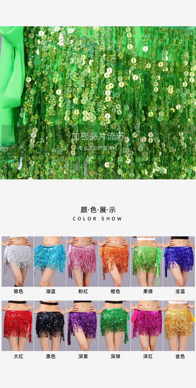 Nova toalha para dança do ventre com lantejoulas e borlas, cintura com corrente e contas, saia com borlas e lantejoulas de 4 camadas, toalha para dança do ventre e quadril