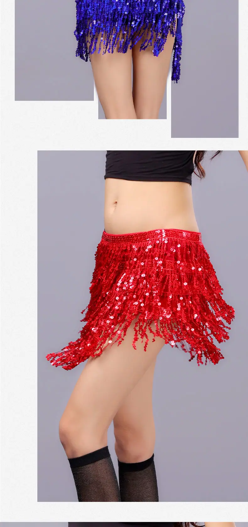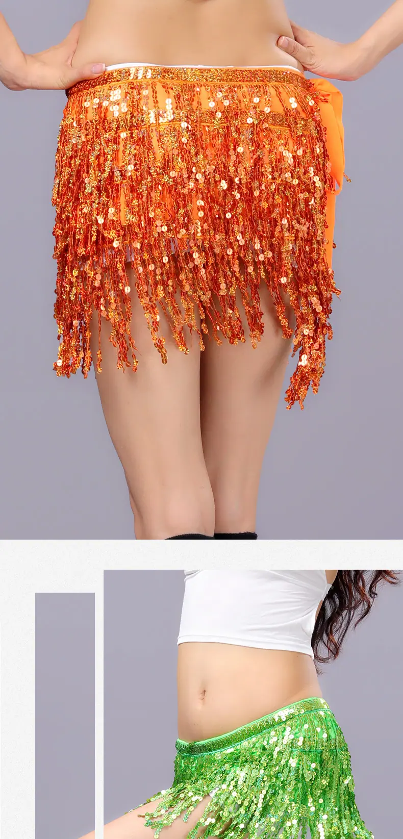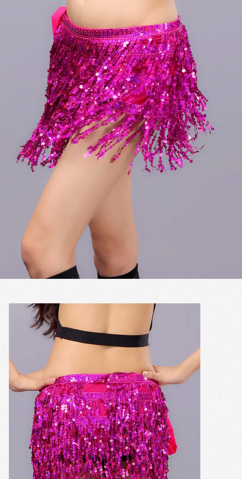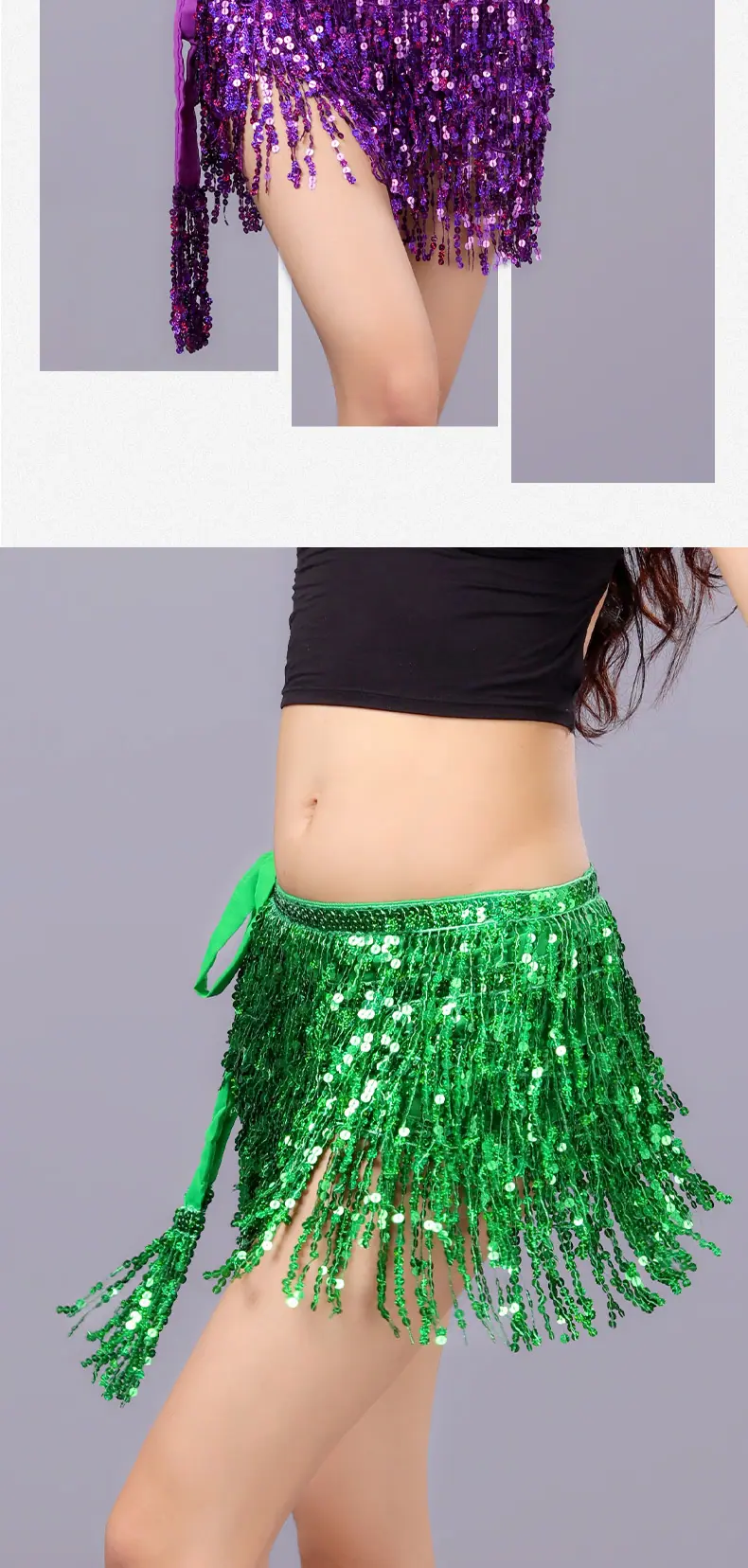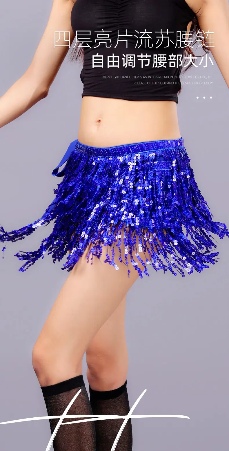 Compre Nova toalha para dança do ventre com lantejoulas e borlas, cintura com corrente e contas, saia com borlas e lantejoulas de 4 camadas, toalha para dança do ventre e quadril no atacado no Joom.pro