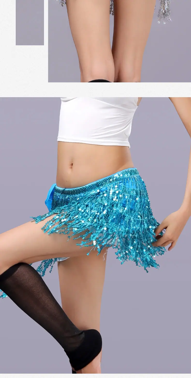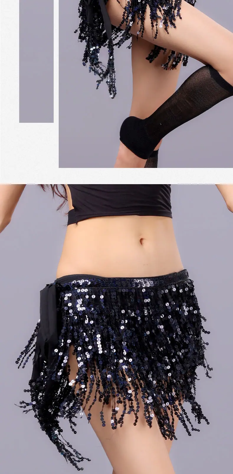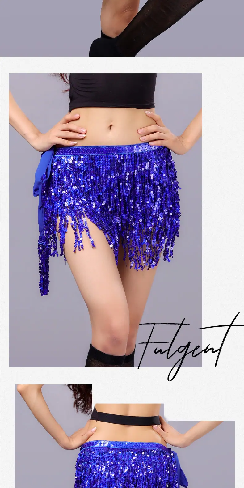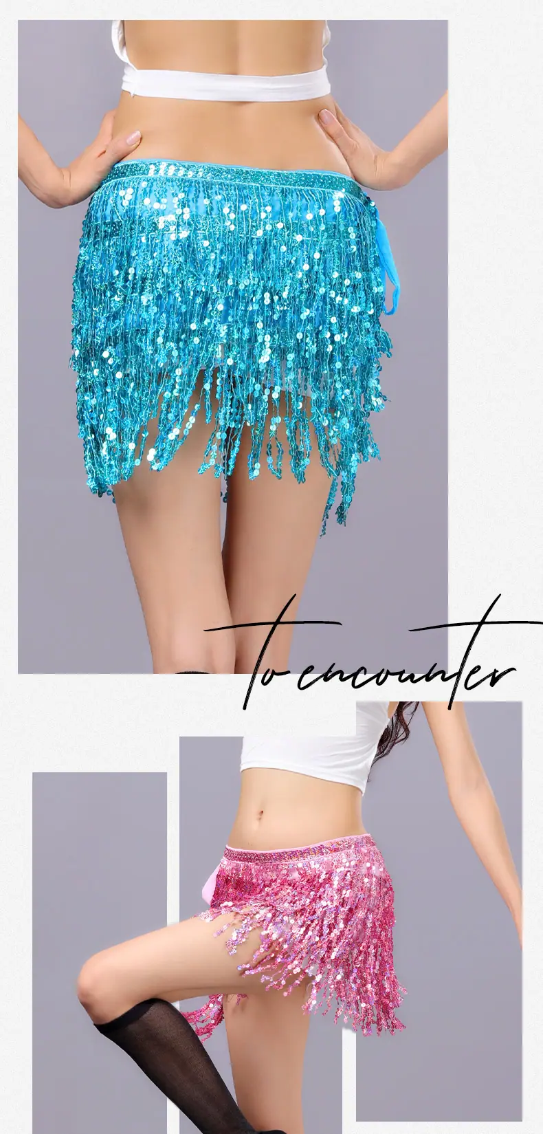 Compre Nova toalha para dança do ventre com lantejoulas e borlas, cintura com corrente e contas, saia com borlas e lantejoulas de 4 camadas, toalha para dança do ventre e quadril no atacado no Joom.pro