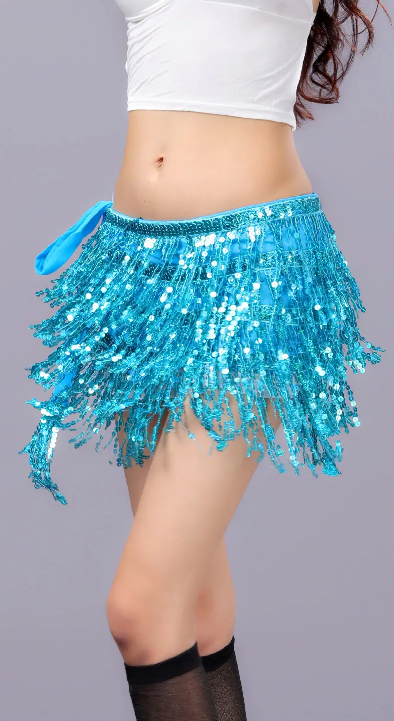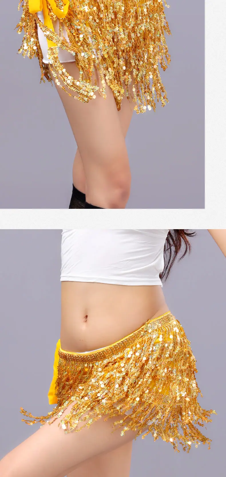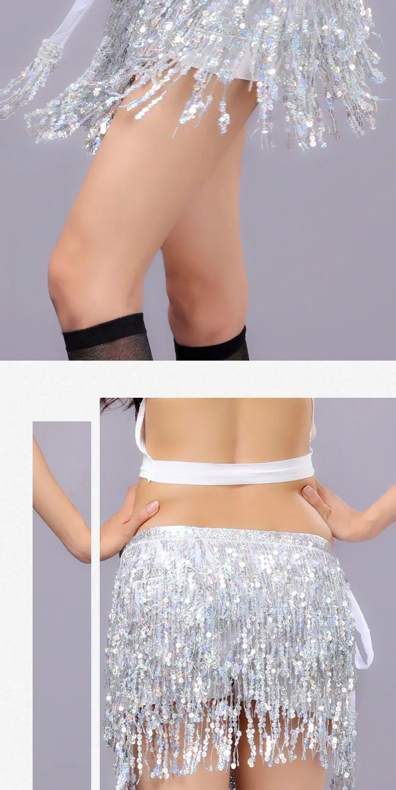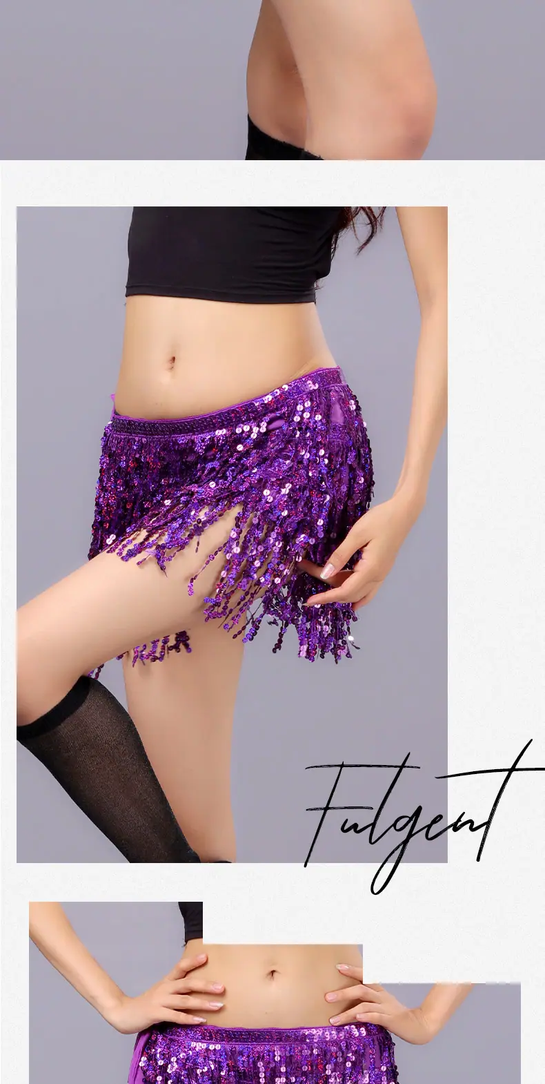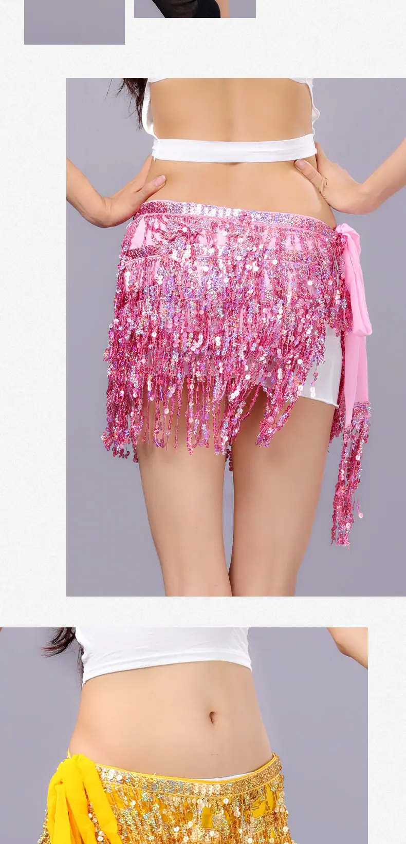 Compre Nova toalha para dança do ventre com lantejoulas e borlas, cintura com corrente e contas, saia com borlas e lantejoulas de 4 camadas, toalha para dança do ventre e quadril no atacado no Joom.pro