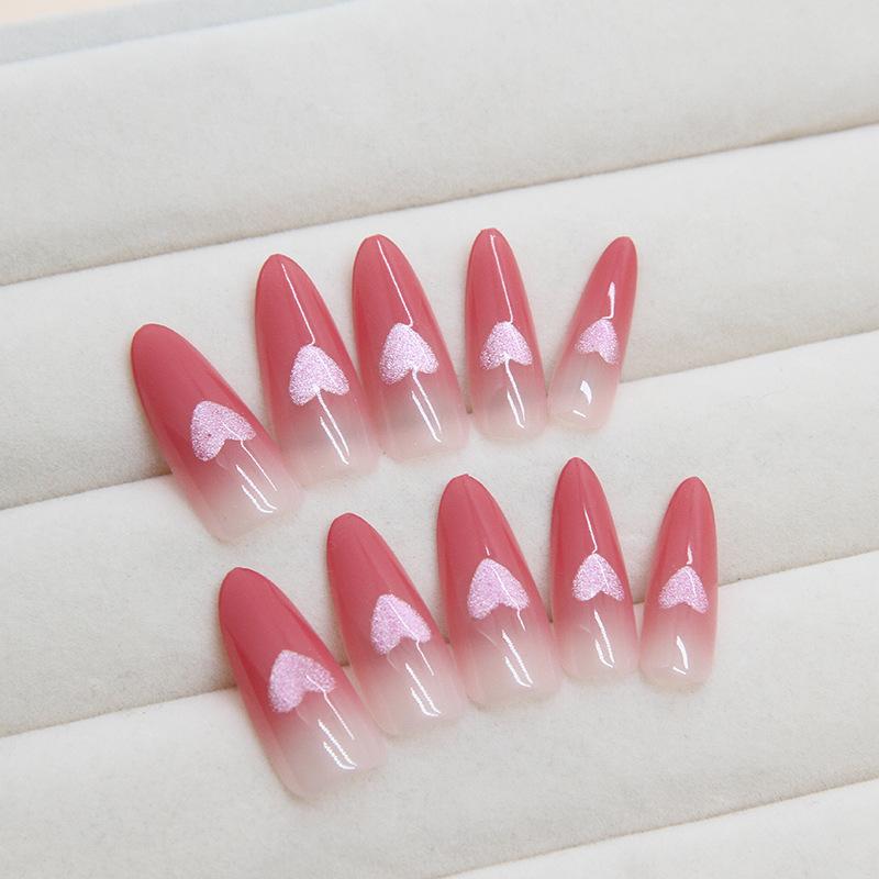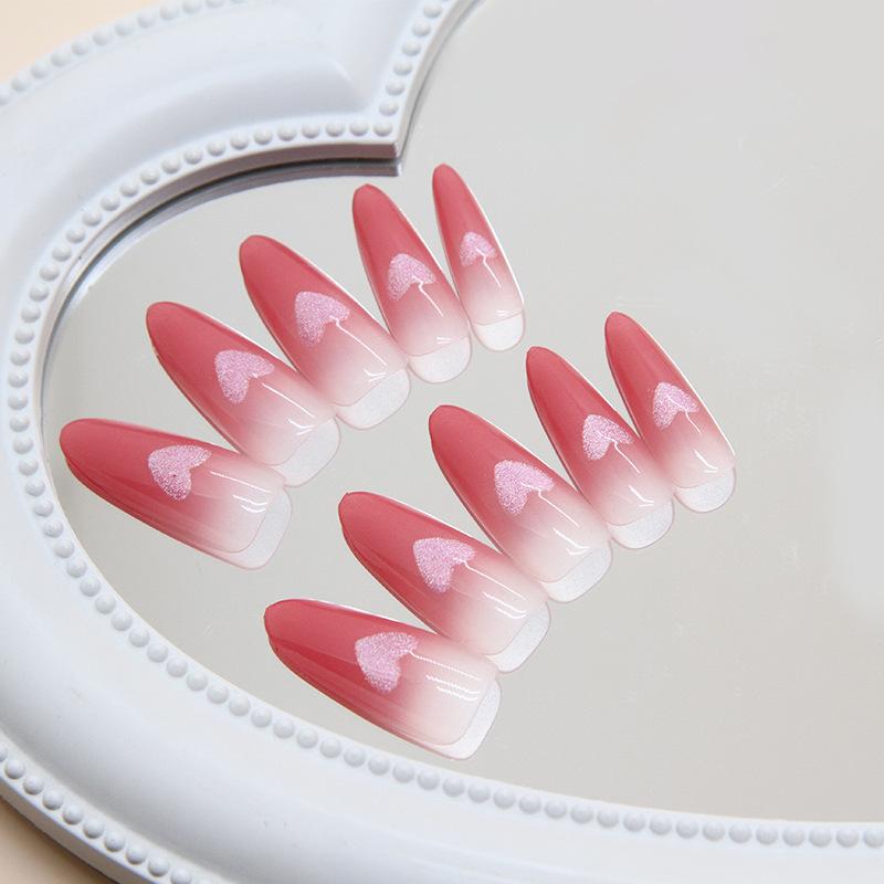 Peças de unha de olho de gato Peças de unha de amor removíveis Peças de unha doces Advanced Sense Gradient Long Nail Patch