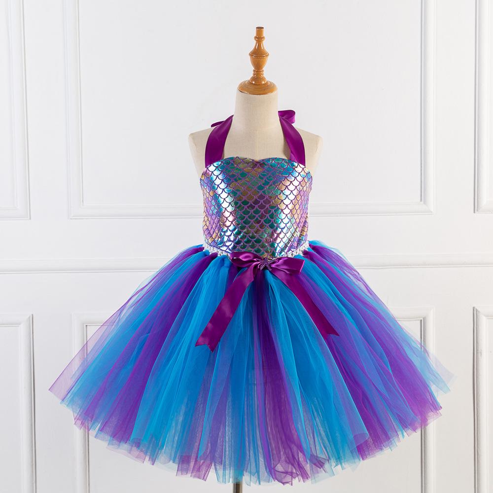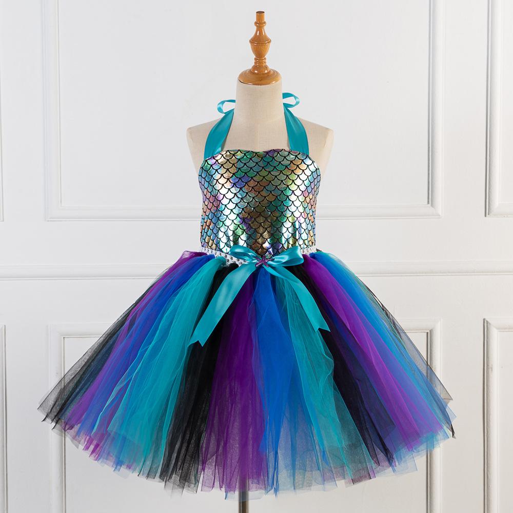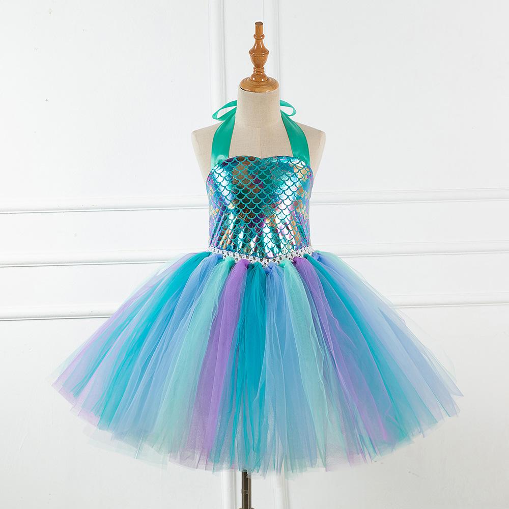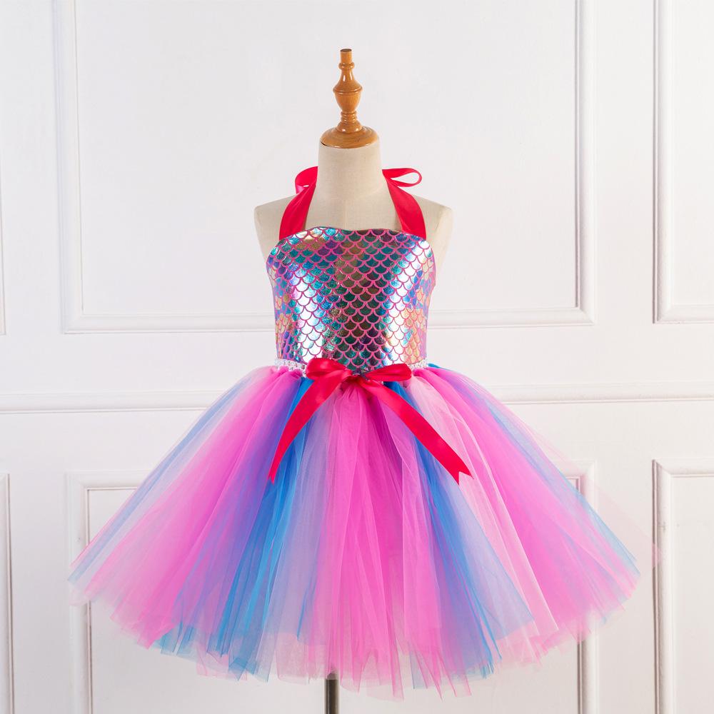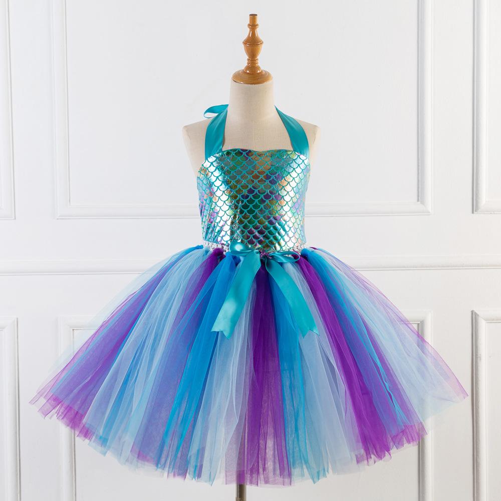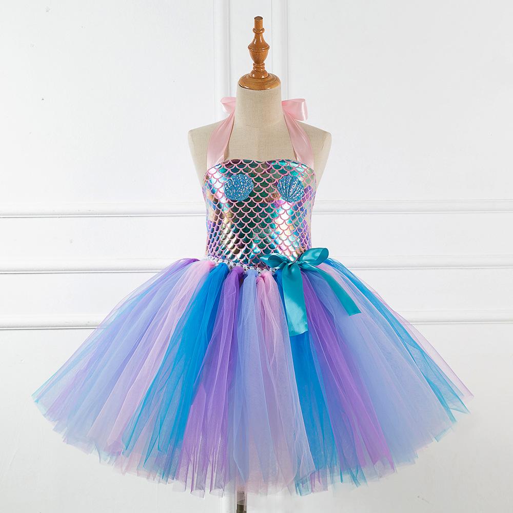 Sereia meninas vestido enviar cocar verão europeu e americano roupas infantis vestido infantil crianças vestido