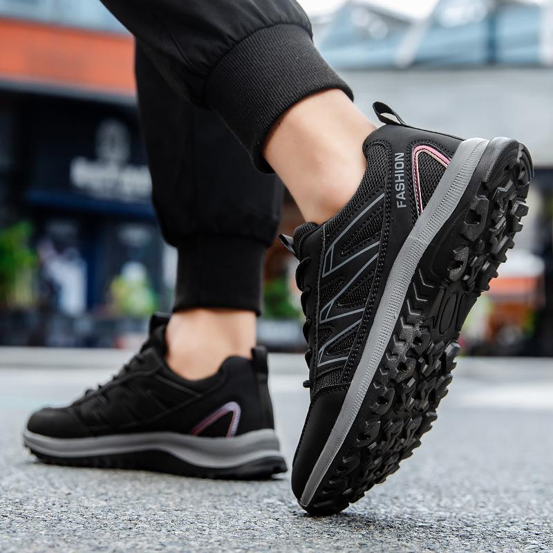 Sapatos Masculinos Primavera 2025 Novos Sapatos de Caminhada para Homens e Mulheres Primavera e Outono Malha Frio Aderente Sola Macia Idosos e Idosas Sapatos Esportivos