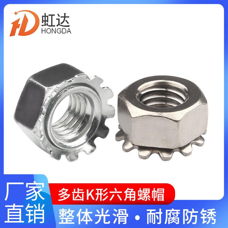 Porca tipo K com dentes e múltiplos dentes Porca sextavada externa K Fixador niquelado M3/M4 Porca de aço inoxidável 304