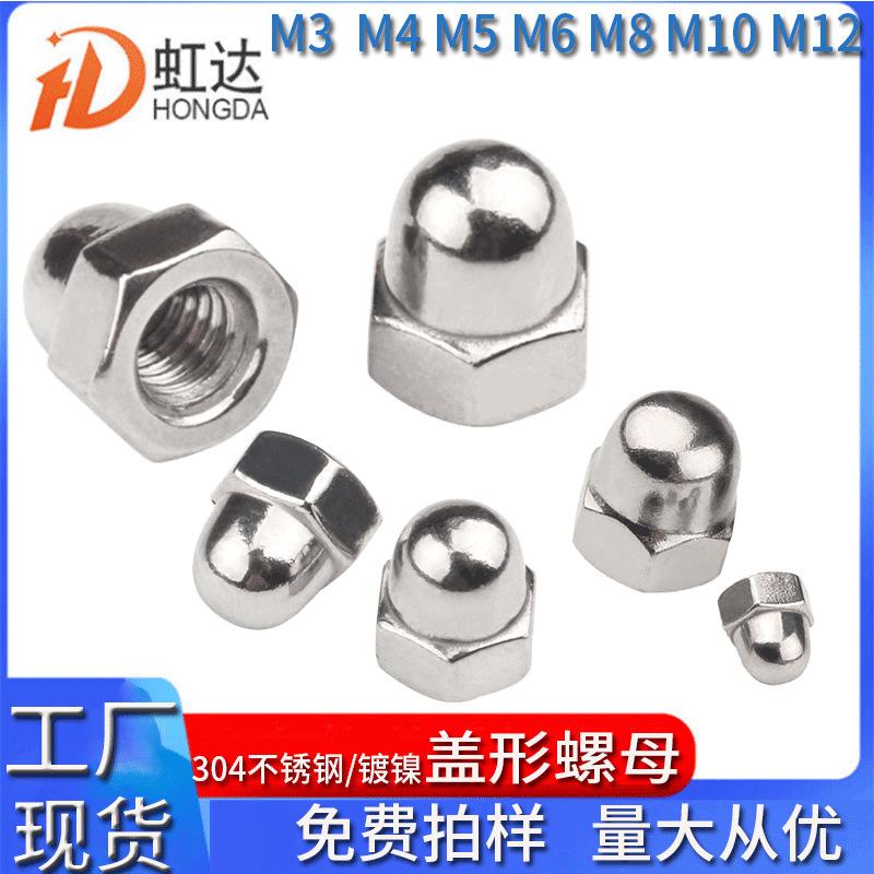 Porca de tampa sextavada niquelada 304 aço inoxidável porca de tampa de uma peça porca de cabeça esférica redonda tampa integrada