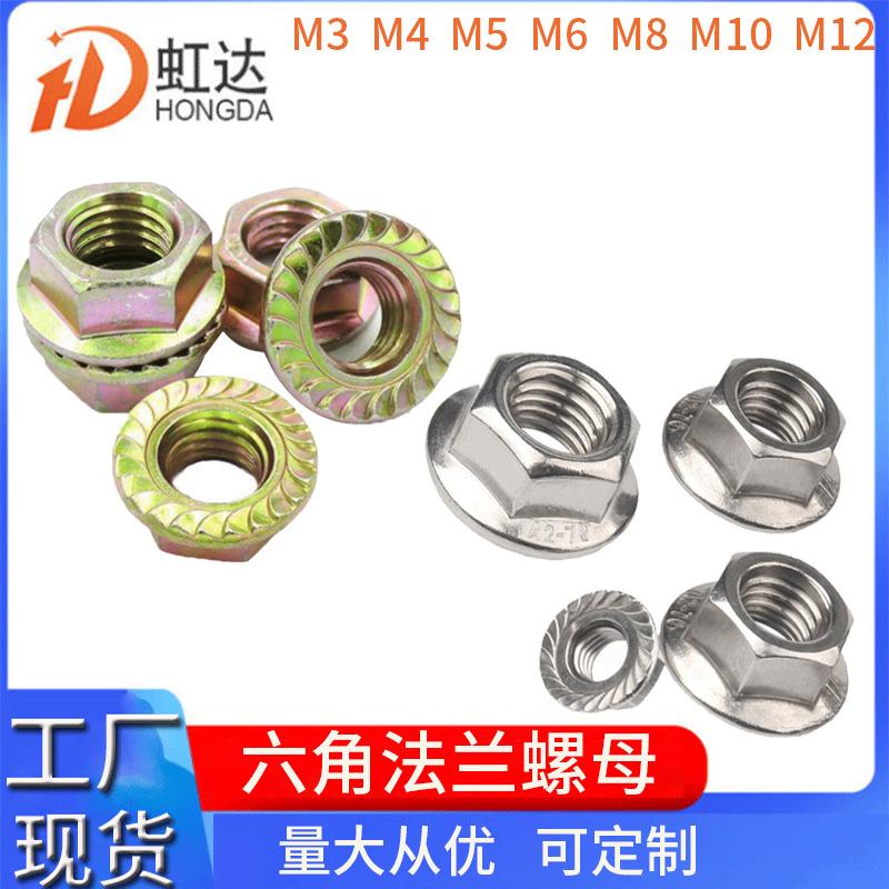Porca de flange sextavada, almofada de correia dentada padrão, porca sextavada anti-afrouxamento com dentes antiderrapantes, porca de flange sextavada externa