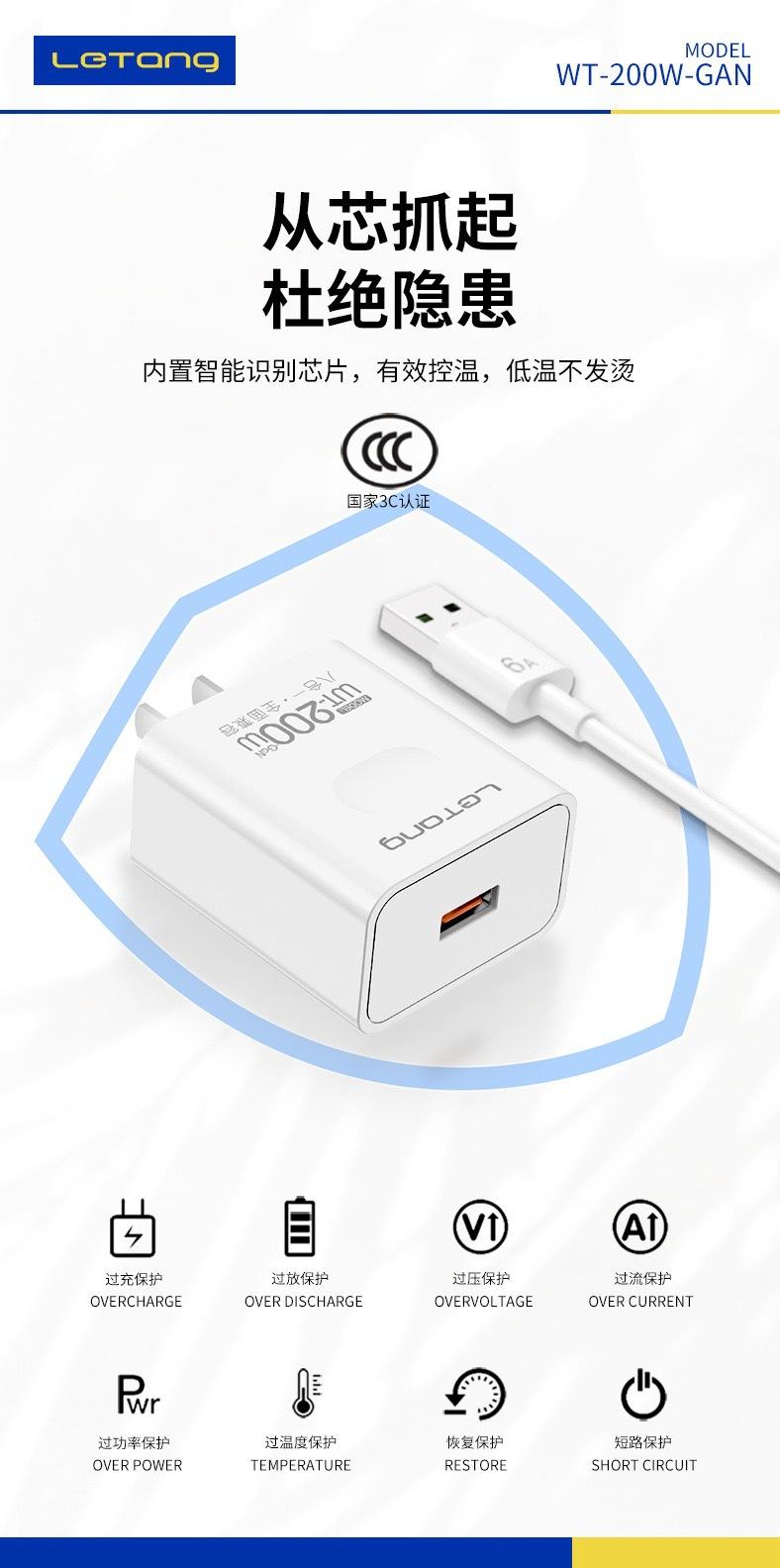 Características do produto: Adequado para carregadores com portas de celular Tipo C no mercado, de acordo com a certificação do padrão nacional 3c