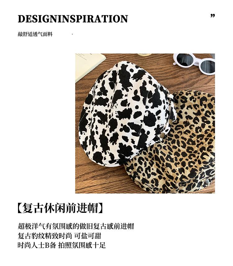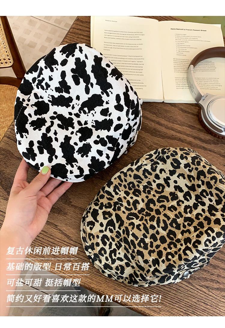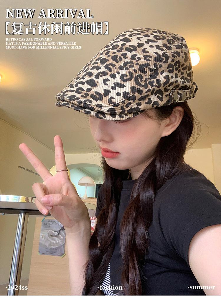 Retro Leopard Print Progressive Hat Feminino Primavera e Verão Distintivo Rosto Little Spice Girl Duck Tongue Beret Trendy Cool Asian Culture Hat
