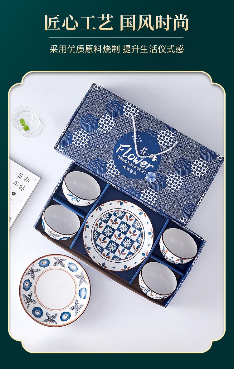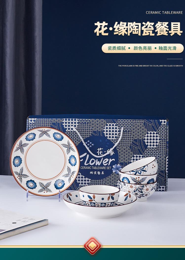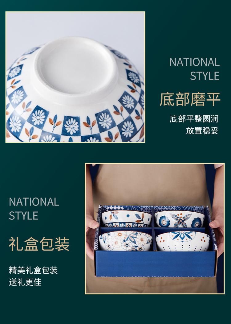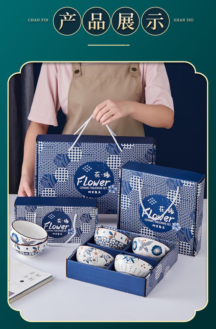Conjunto de Tigelas de Cor Sob Esmalte Conjunto de Tigelas de Cerâmica Tigela de Louça Caixa de Presente Tigela de Arroz Doméstica Pequeno Presente Conjunto Transfronteiriço Tigela