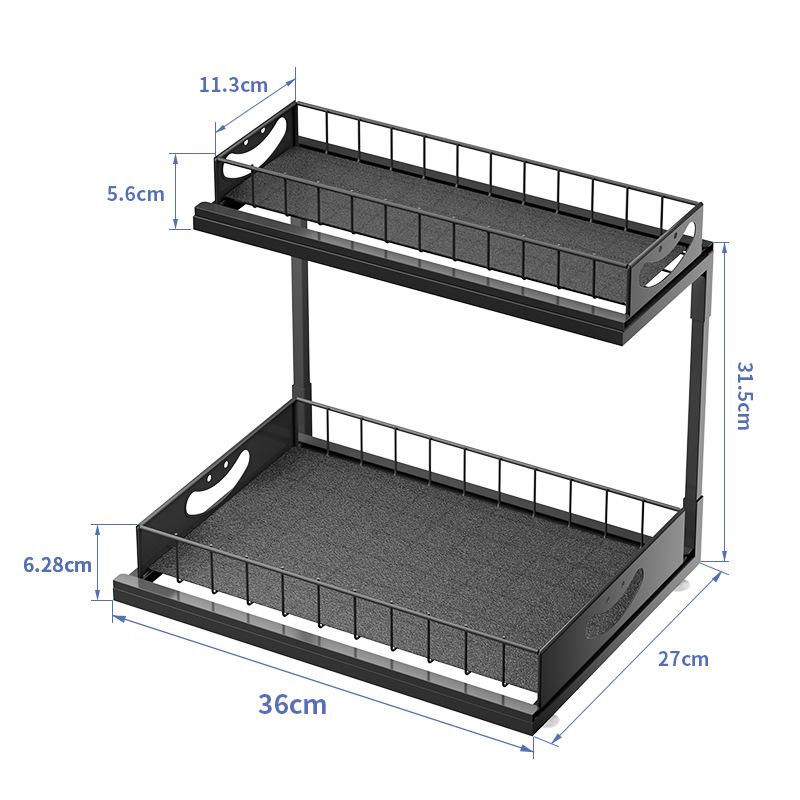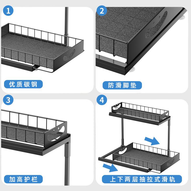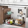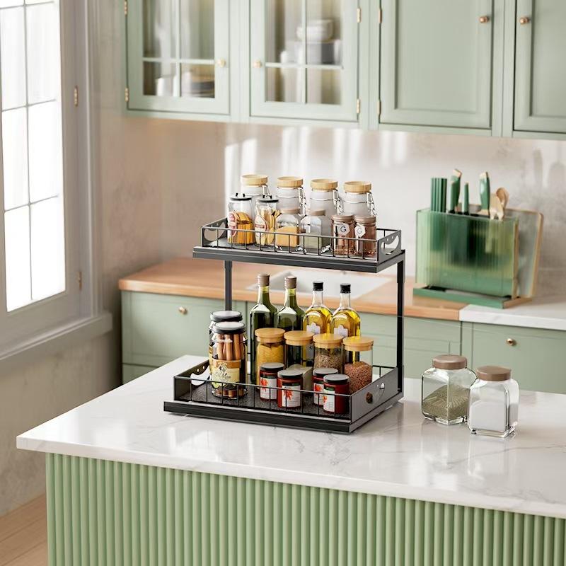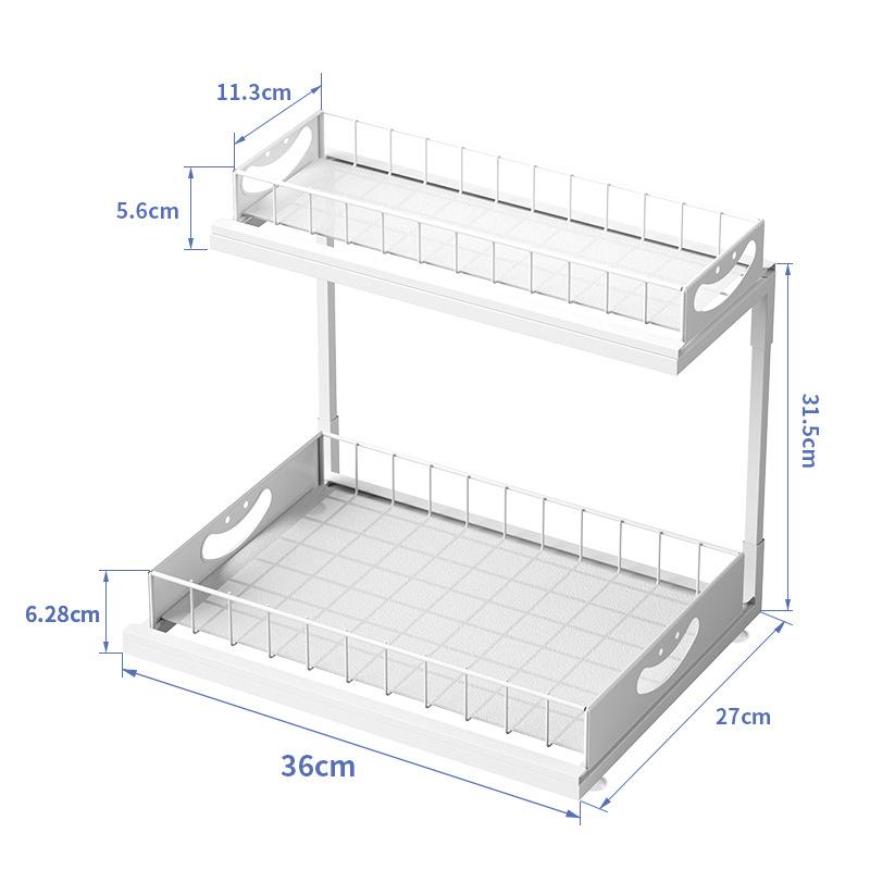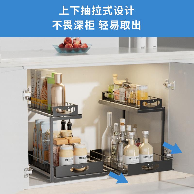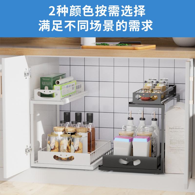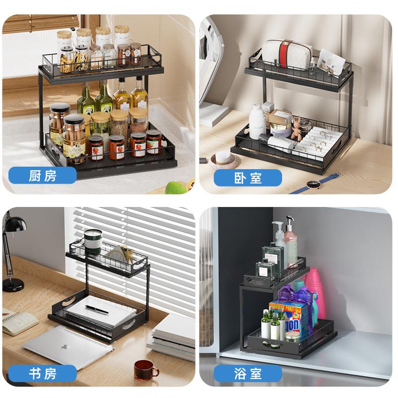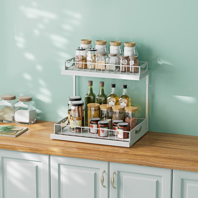 Em estoque Rack de armazenamento de cozinha de camada dupla Rack de tempero Pull-out Armário de banheiro Rack de armazenamento de pia Rack de ajuste doméstico