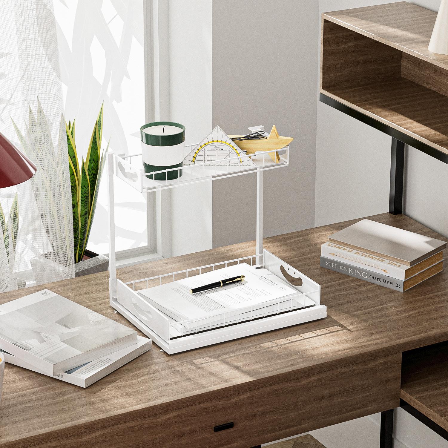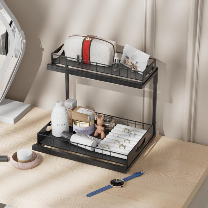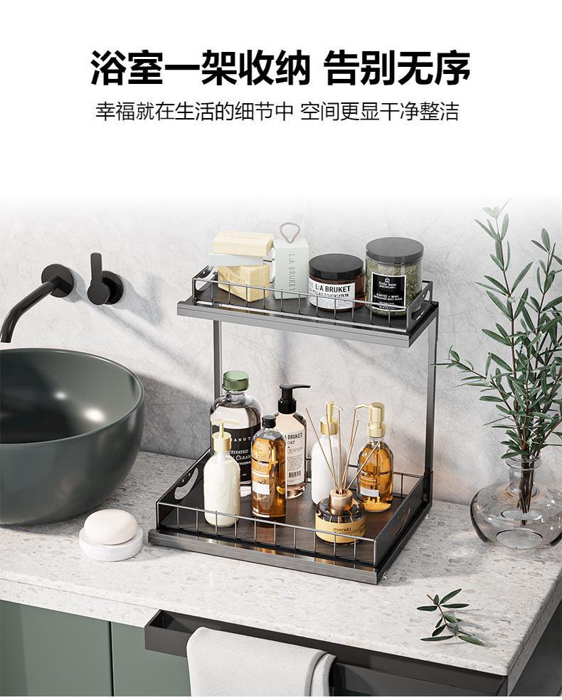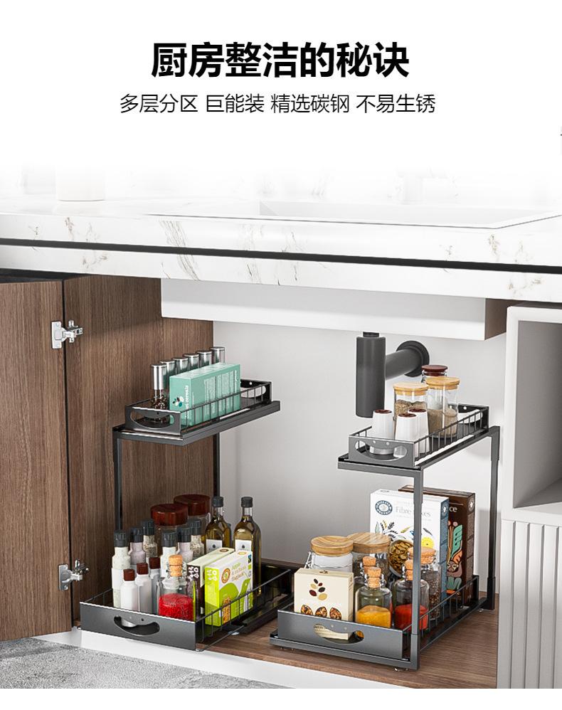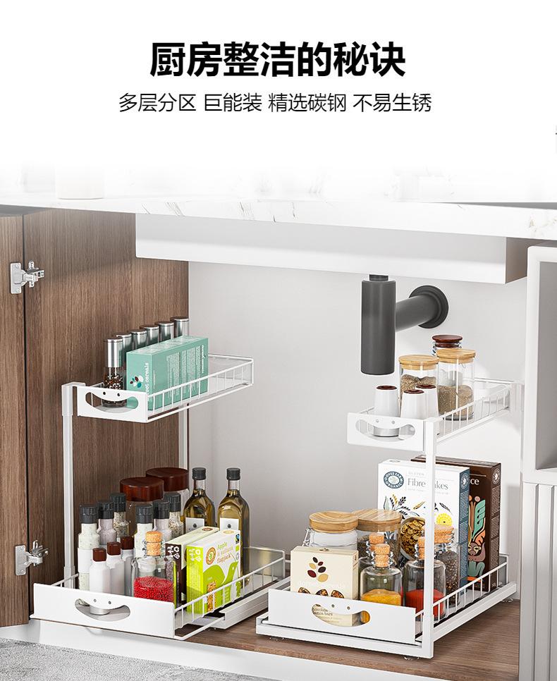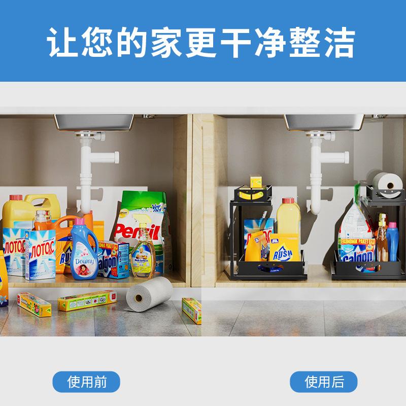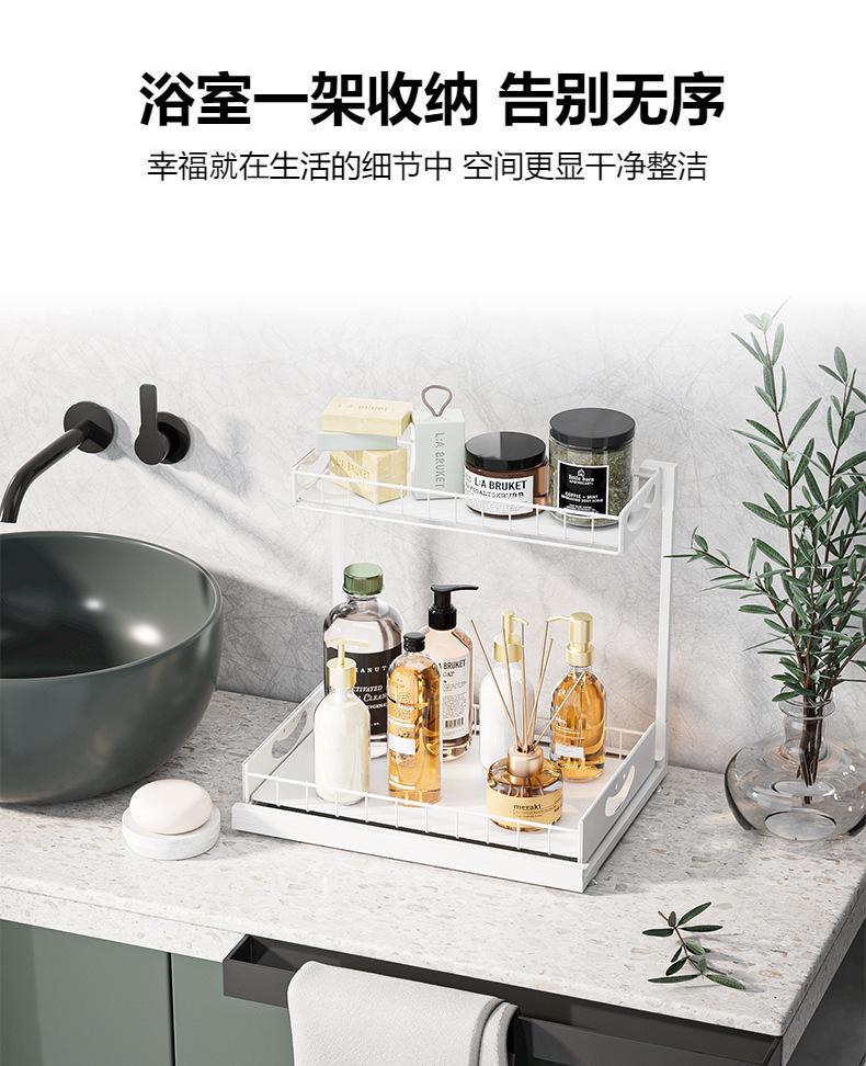 Em estoque Rack de armazenamento de cozinha de camada dupla Rack de tempero Pull-out Armário de banheiro Rack de armazenamento de pia Rack de ajuste doméstico
