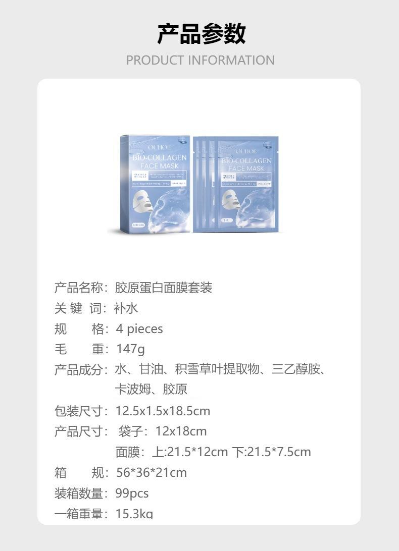 Conjunto de Máscara de Colágeno Ouhoe Hidratante, Nutritivo, Delicado Firmador da Pele Facial, Máscara Elástica para a Pele