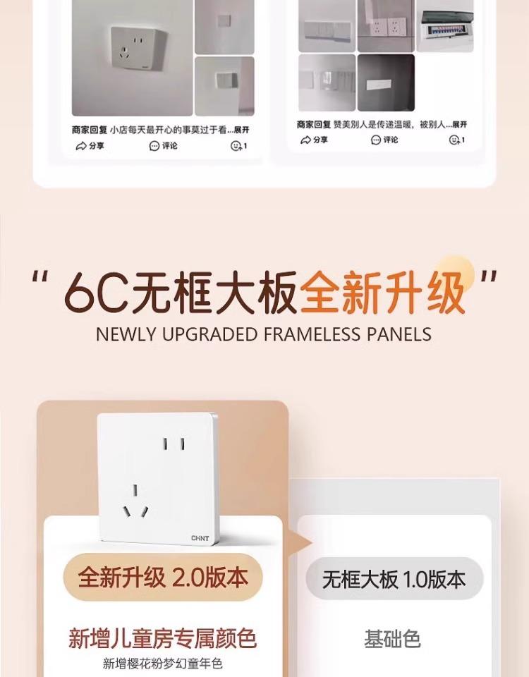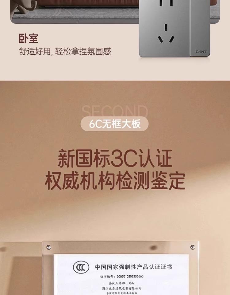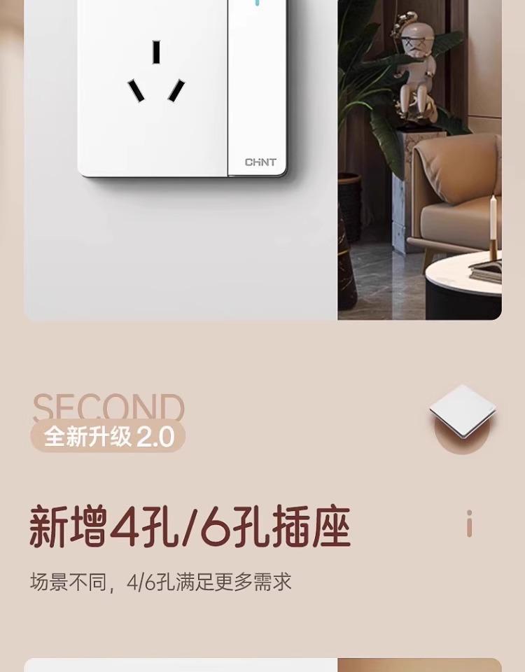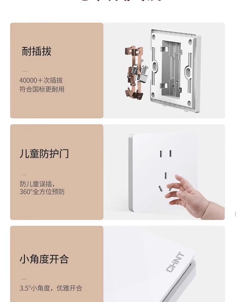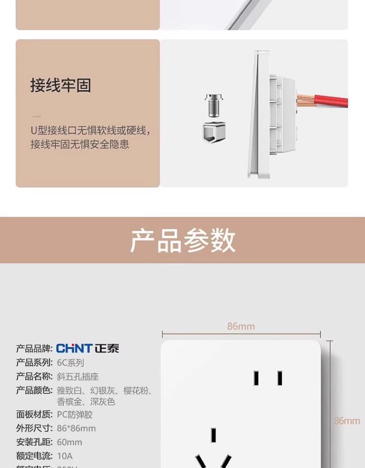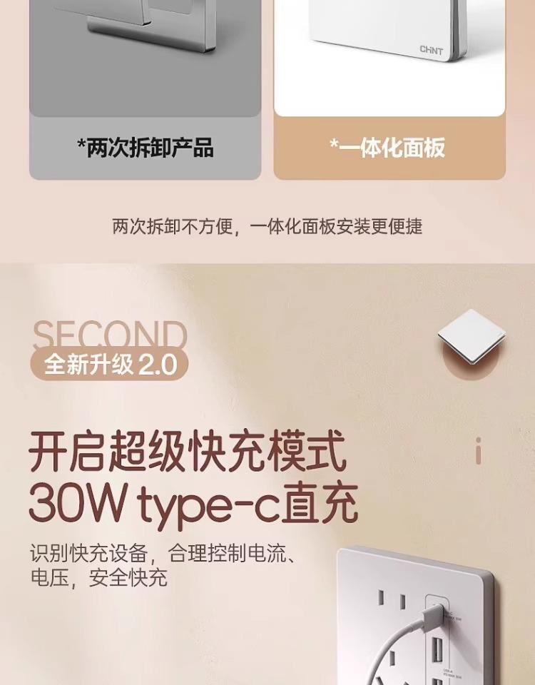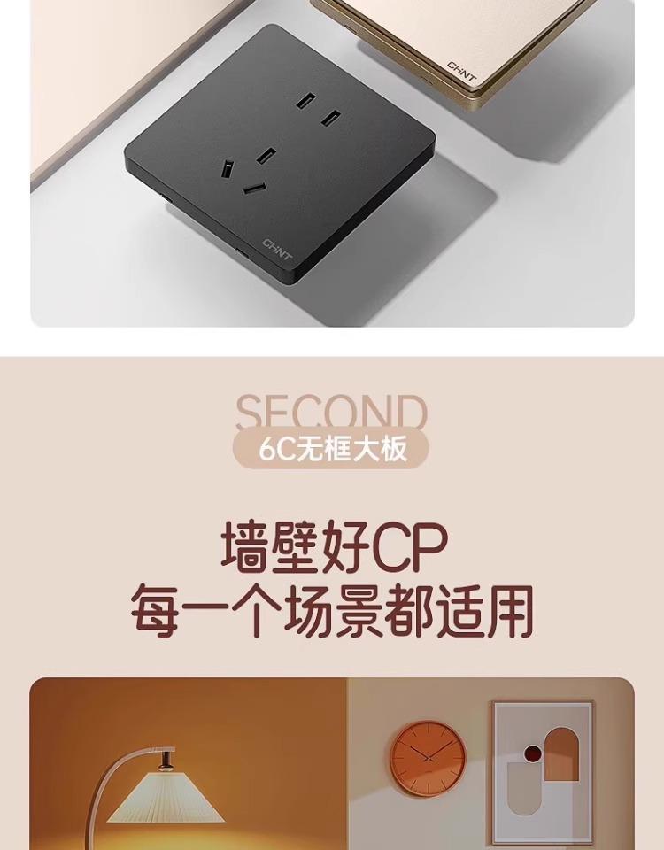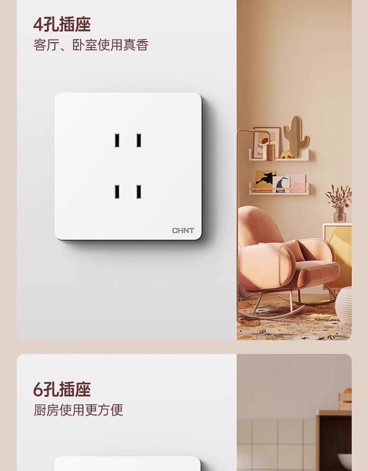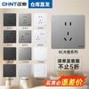 Chint interruptor tomada doméstica 86 parede escura cinco furos USB painel poroso 6C creme vento branco atacado