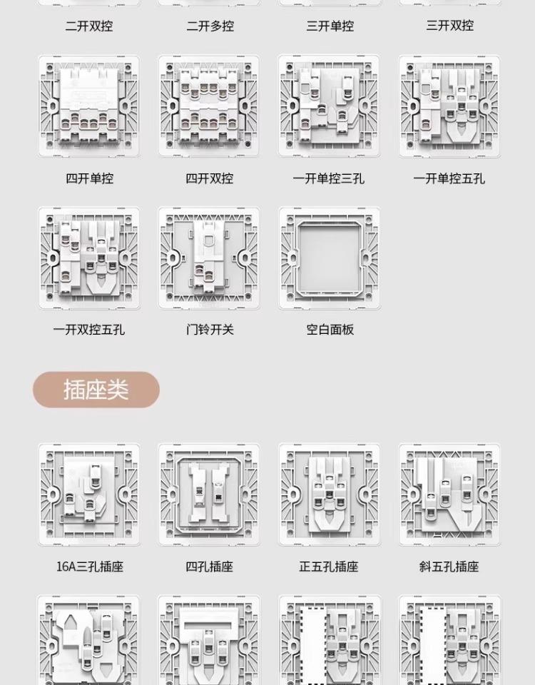 Diagonal five holes, Positive five holes, Three-hole 16a (air conditioning socket), One open single control th...