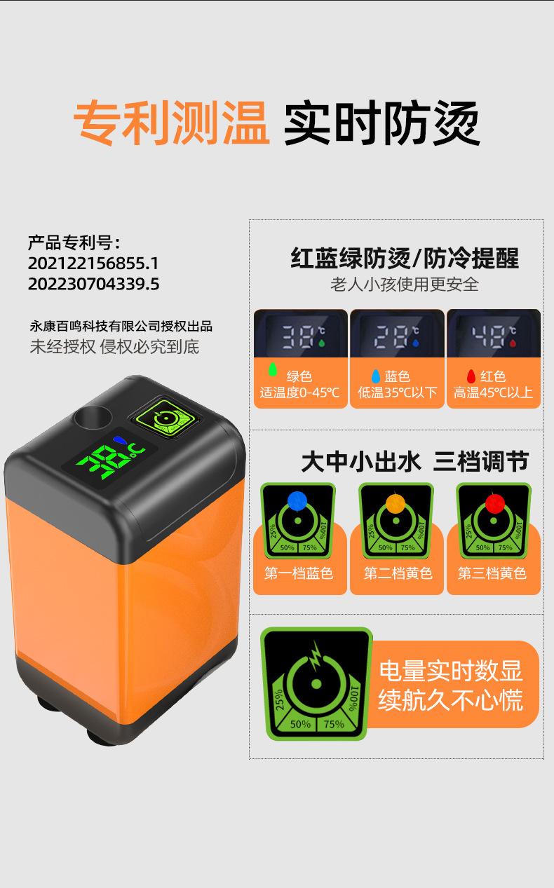 Artefato de banho portátil para áreas externas, chuveiro elétrico sem fio, dormitório de construção residencial, dormitório estudantil, chuveiro e banheira