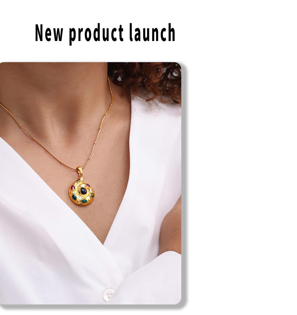 Cross-border Hot Selling Geométrico Espiral Esmalte Pingente Clavícula Colar Vintage Personalidade Design Aço Inoxidável Banhado 18k Ouro Verdadeiro