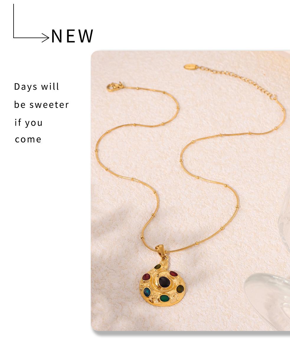 Cross-border Hot Selling Geométrico Espiral Esmalte Pingente Clavícula Colar Vintage Personalidade Design Aço Inoxidável Banhado 18k Ouro Verdadeiro